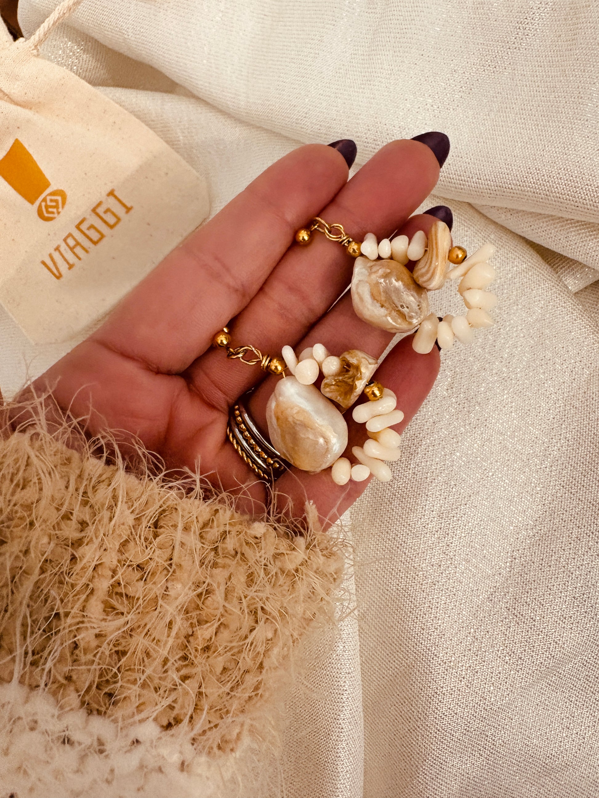 Los pendientes Margaret están diseñados con perlas barrocas y conchas alambradas, confeccionados en acero inoxidable. Este material garantiza durabilidad y resistencia a la corrosión, lo que los hace ideales para uso diario. Su diseño elegante combina funcionalidad y estilo, permitiendo una integración perfecta en diversas ocasiones.