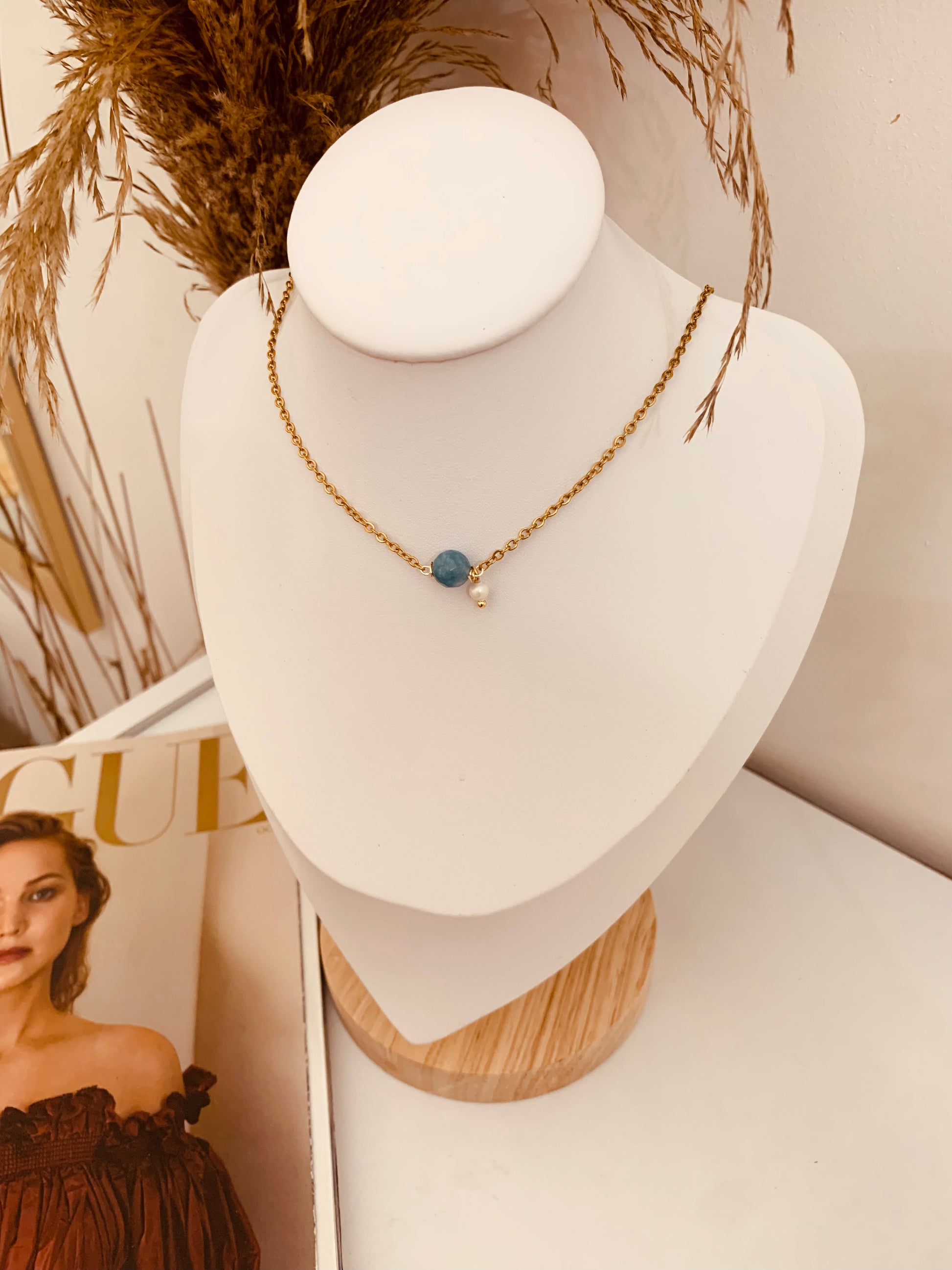 Collar con delicada piedra azul en acero inoxidable
