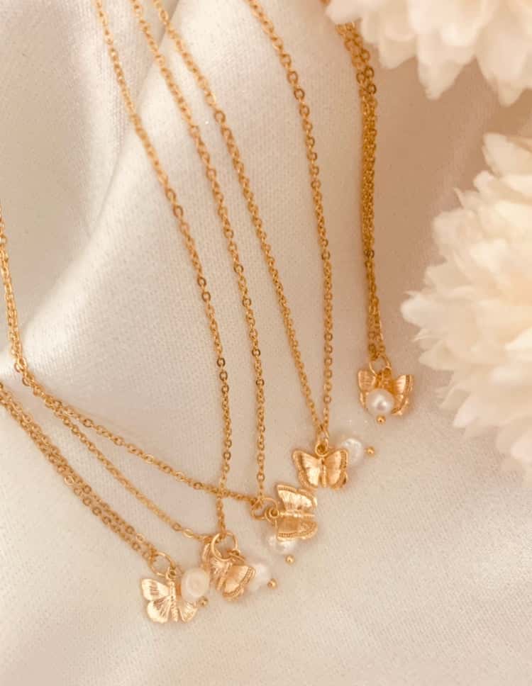 Delicado collar elaborado a mano en acero inoxidable. 45cm Mariposa Gold
