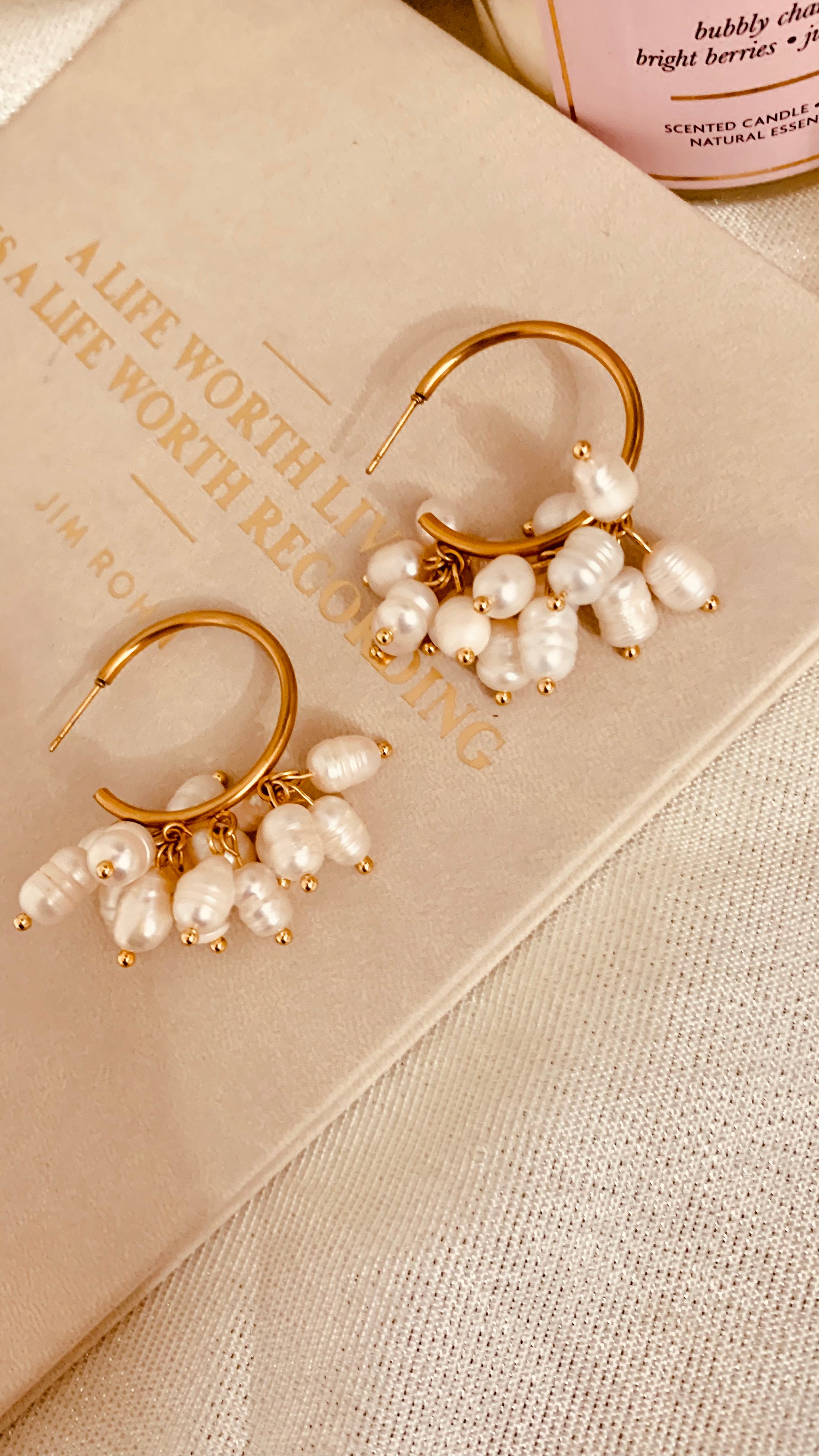 Delicados pendientes elaborados a mano con perlas naturales y acero inoxidable.