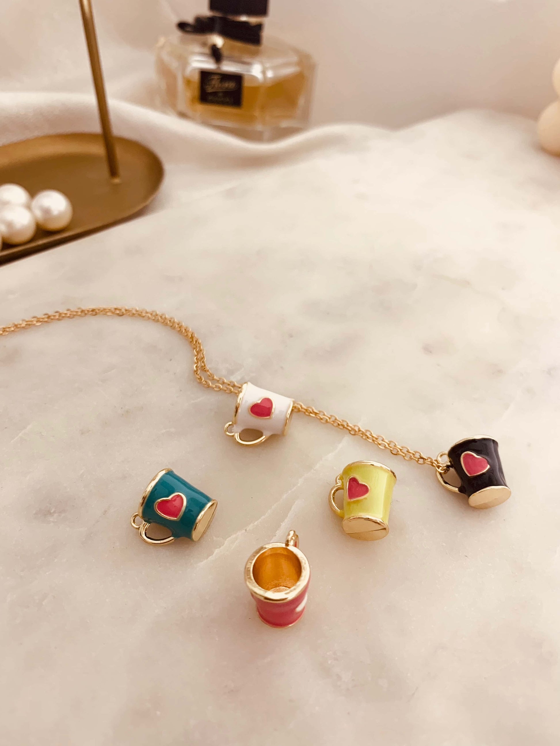 Amantes del café escoge tu mug favorita. Collar tiene expansor.