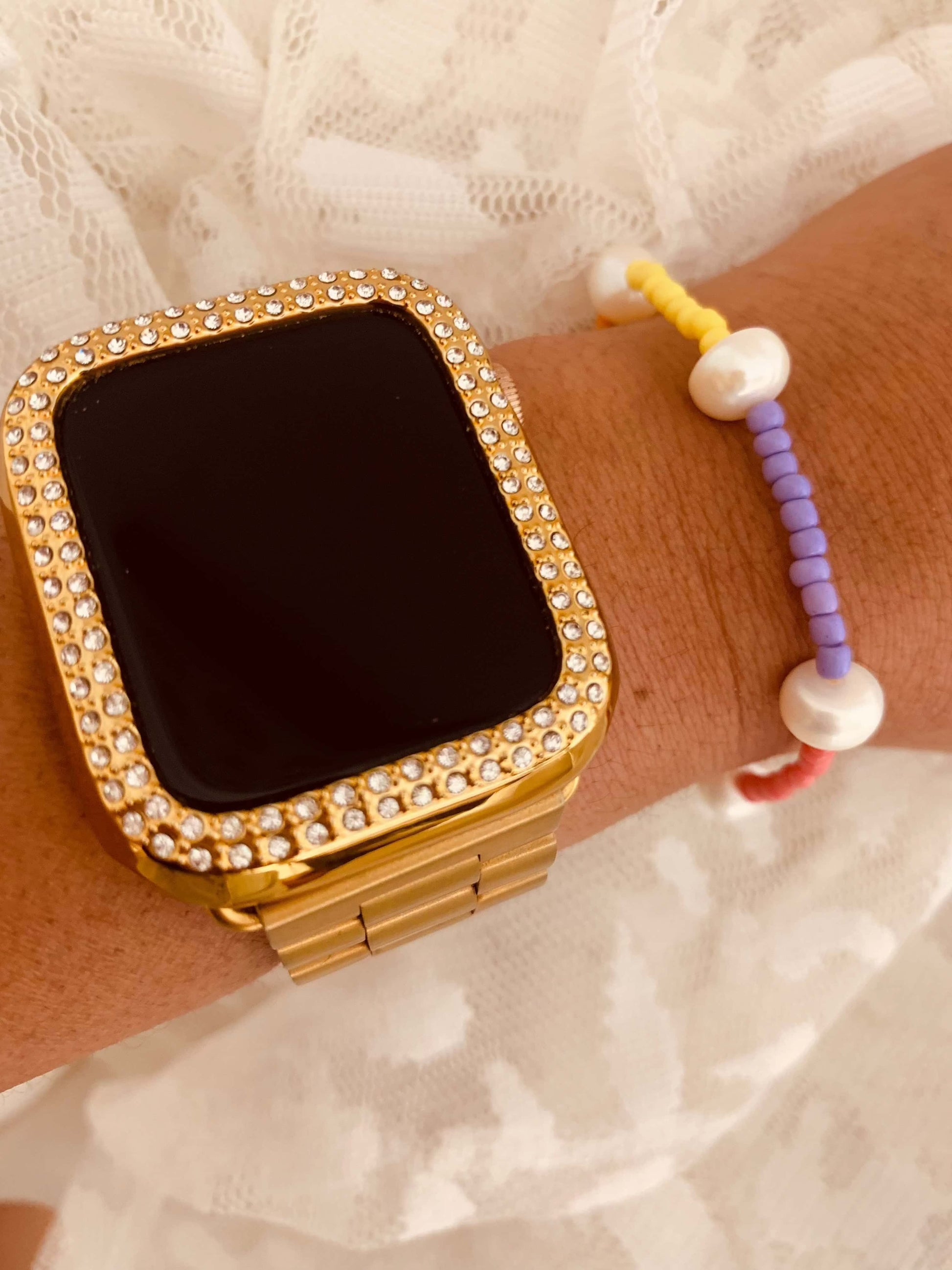 Hermoso brazalete elaborado a mano con perlas cultivada y color glass beads. Elástico