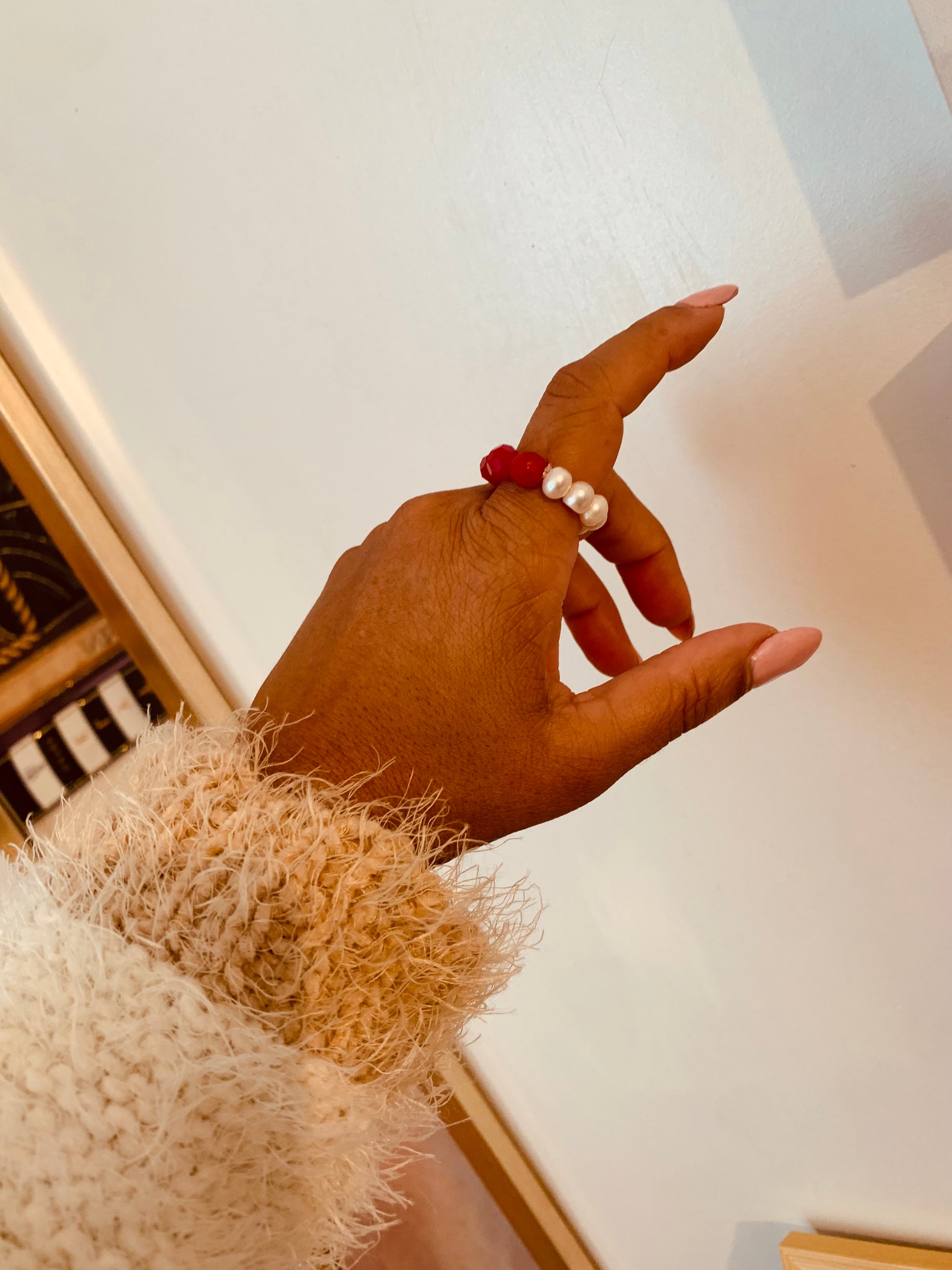 Este anillo de Costa Red Ring es impresionante en su diseño y versatilidad. Cuenta con una hermosa perla adornada con cristales, que puede ser usada en dos formas diferentes. Destáquese con su elegancia y agregue un toque de brillo a cualquier look.