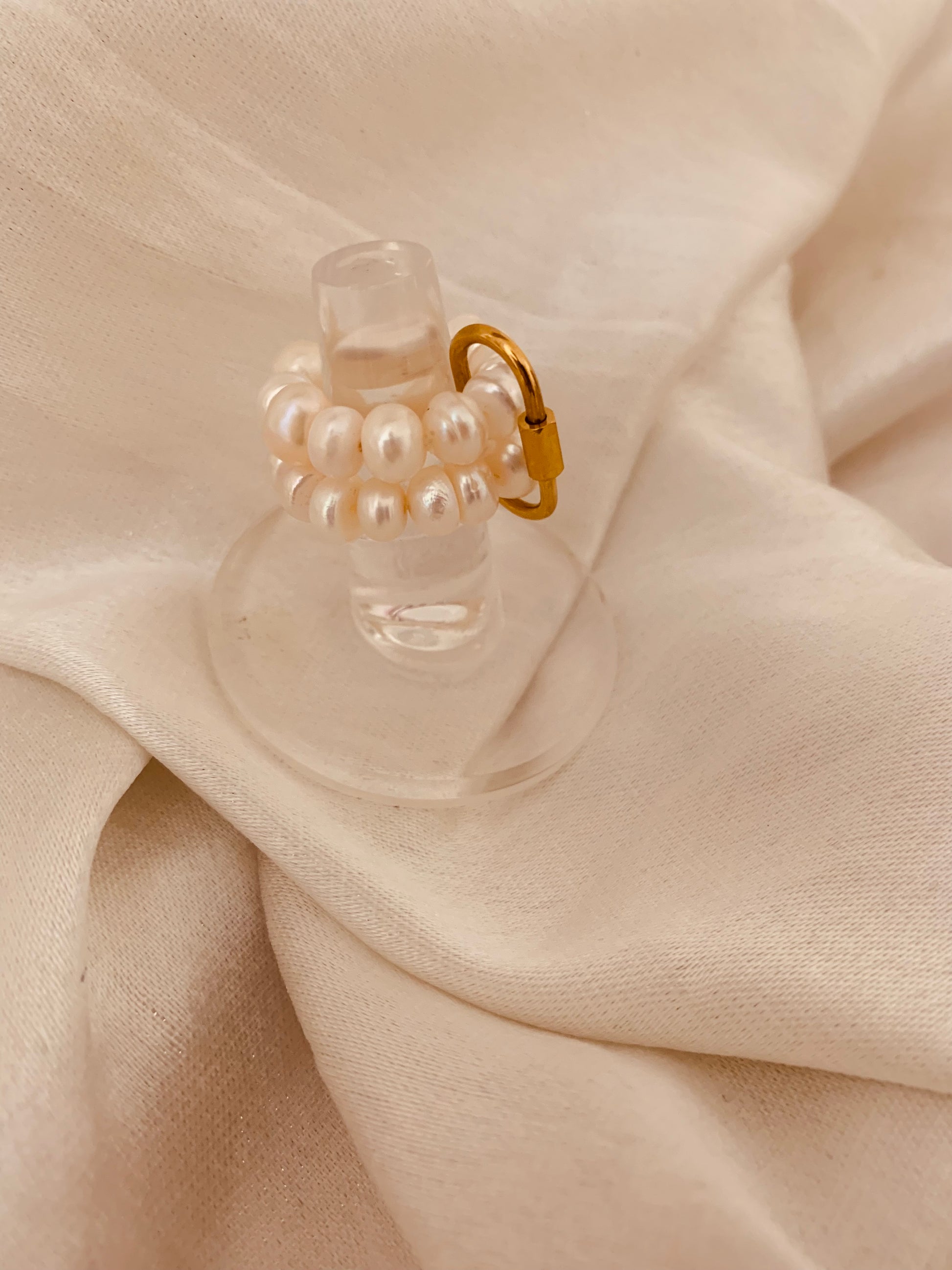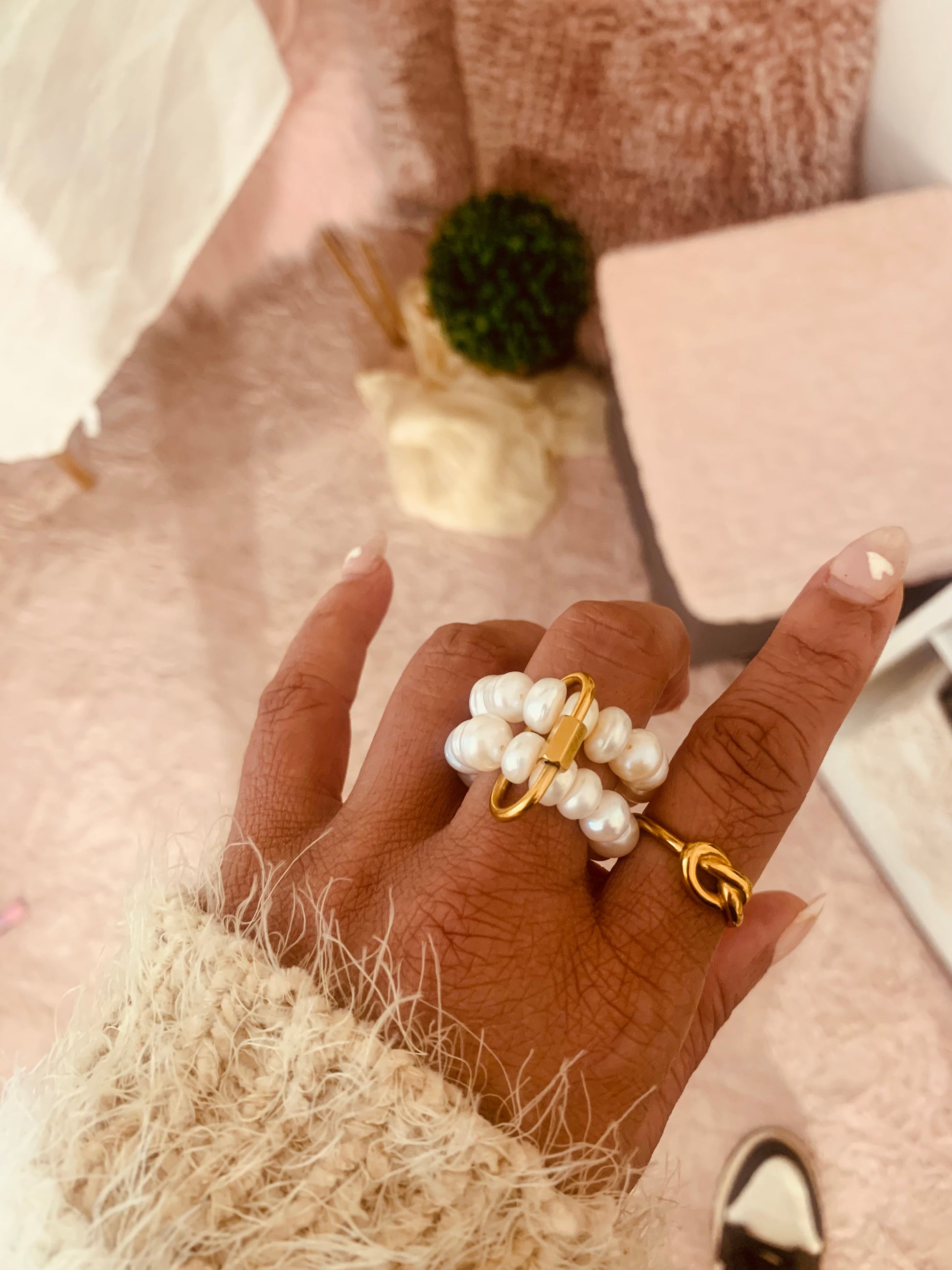 "Este anillo cuenta con perlas naturales y un eslabón en acero, lo que lo hace único y exclusivo en nuestra web. Combina la elegancia de las perlas con la tendencia del acero para darle un toque sofisticado a tu look." Elástico !