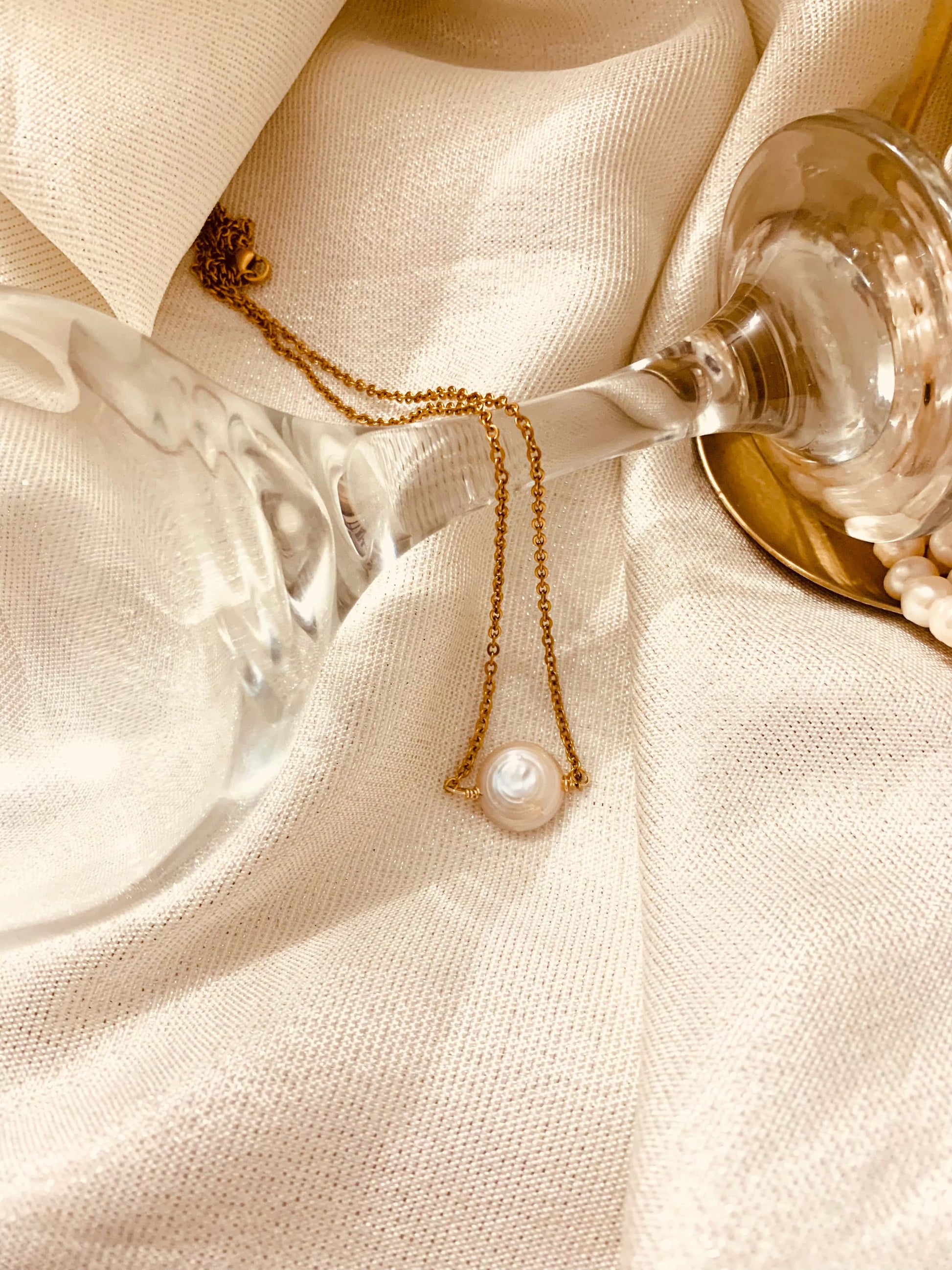 Delicado collar elaborado a mano con perla cultivada y acero inoxidable. Ideal para tercera capa de Layering. Tamaño 18” para otro tamaño favor ponerse en contacto.