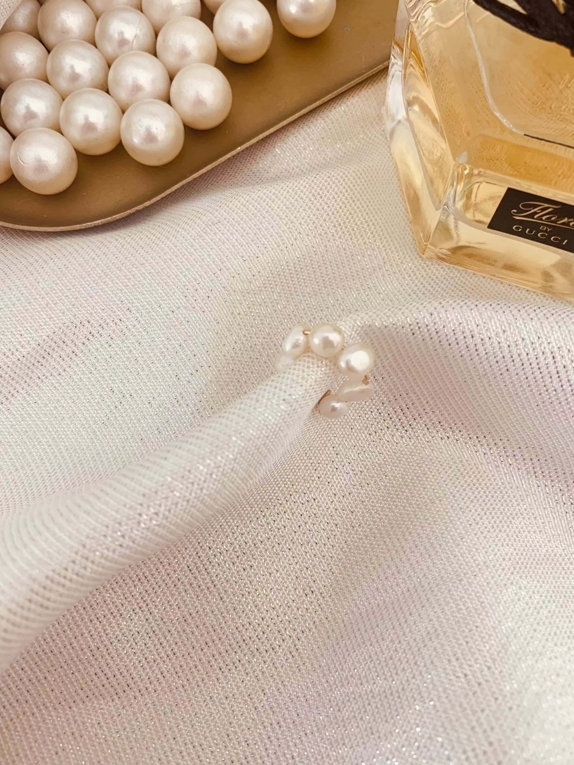 Delicada cuff elaborada a mano con perlas cultivada. Ajustable