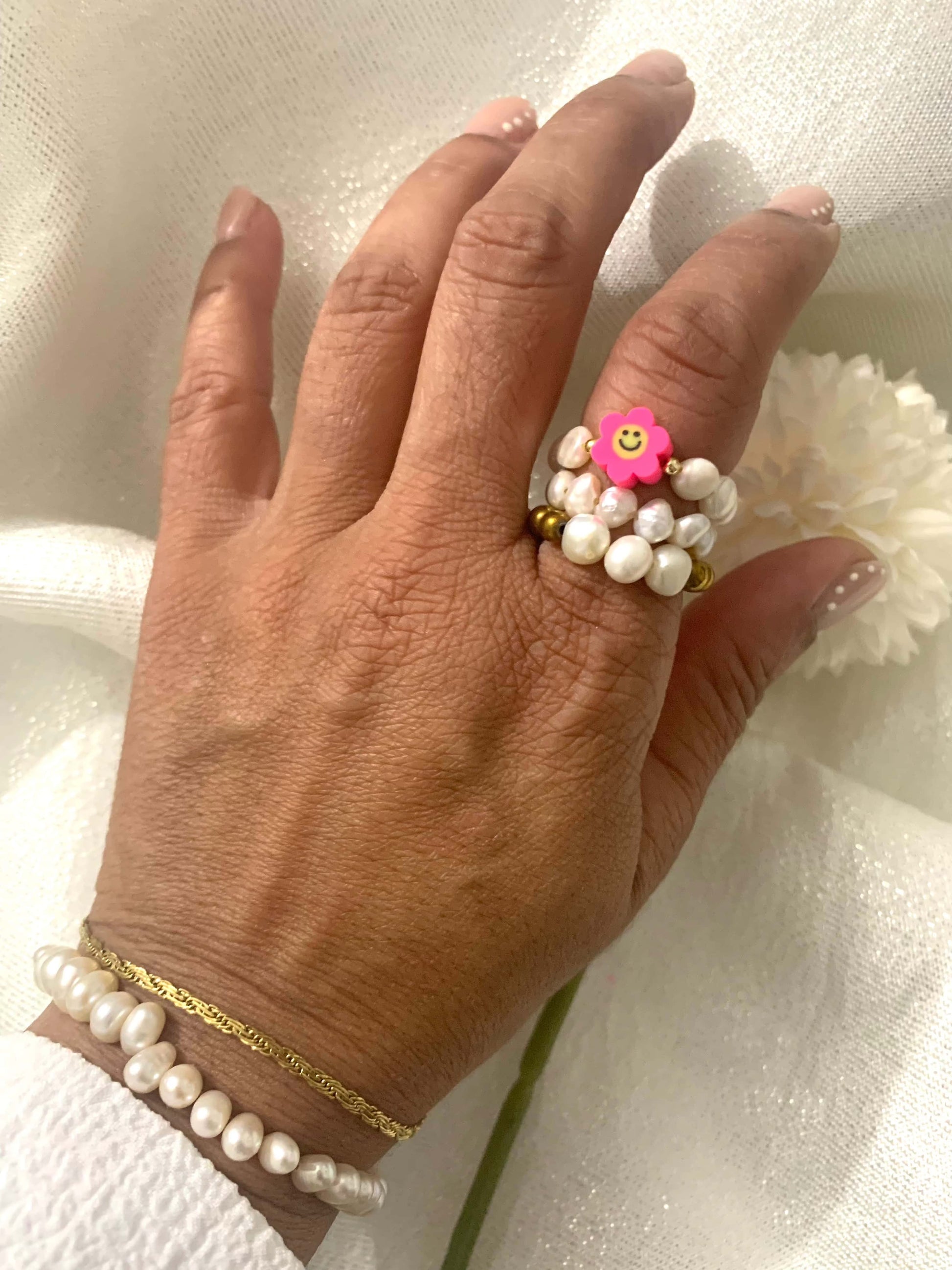Delicado anillo elaborado a mano con perlas cultivada. Ideal para combinar con otros y está en tendencia. Esta súper bello lo amaras cuando lo recibas . Se venden por separado