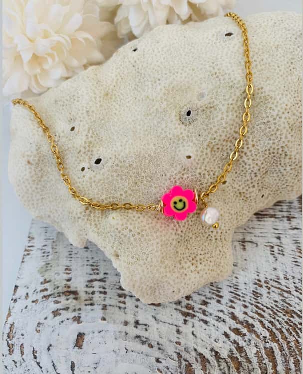 Delicado chocker elaborado a mano con emoji color rosa. Ideal para vestimenta casual. Esta es una buena opción para regalar a hija o mejor amiga.
