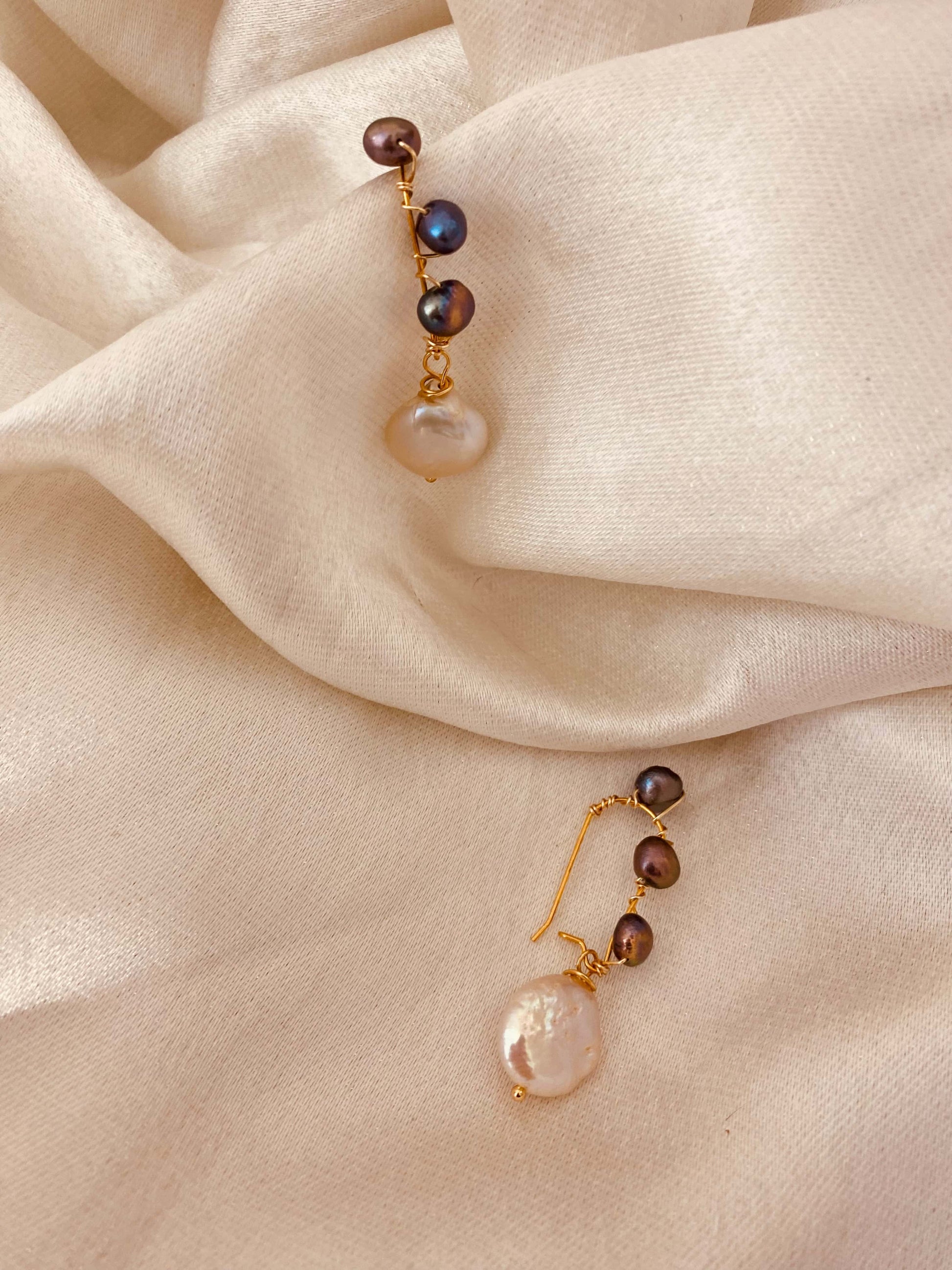 Los pendientes Estela son elegantes y hechos a mano con perlas gris tornasol. Realzando cualquier atuendo con su belleza natural, estos pendientes agregan un toque sofisticado a tu estilo. Resalta con el brillo de las perlas y deja una impresión duradera.