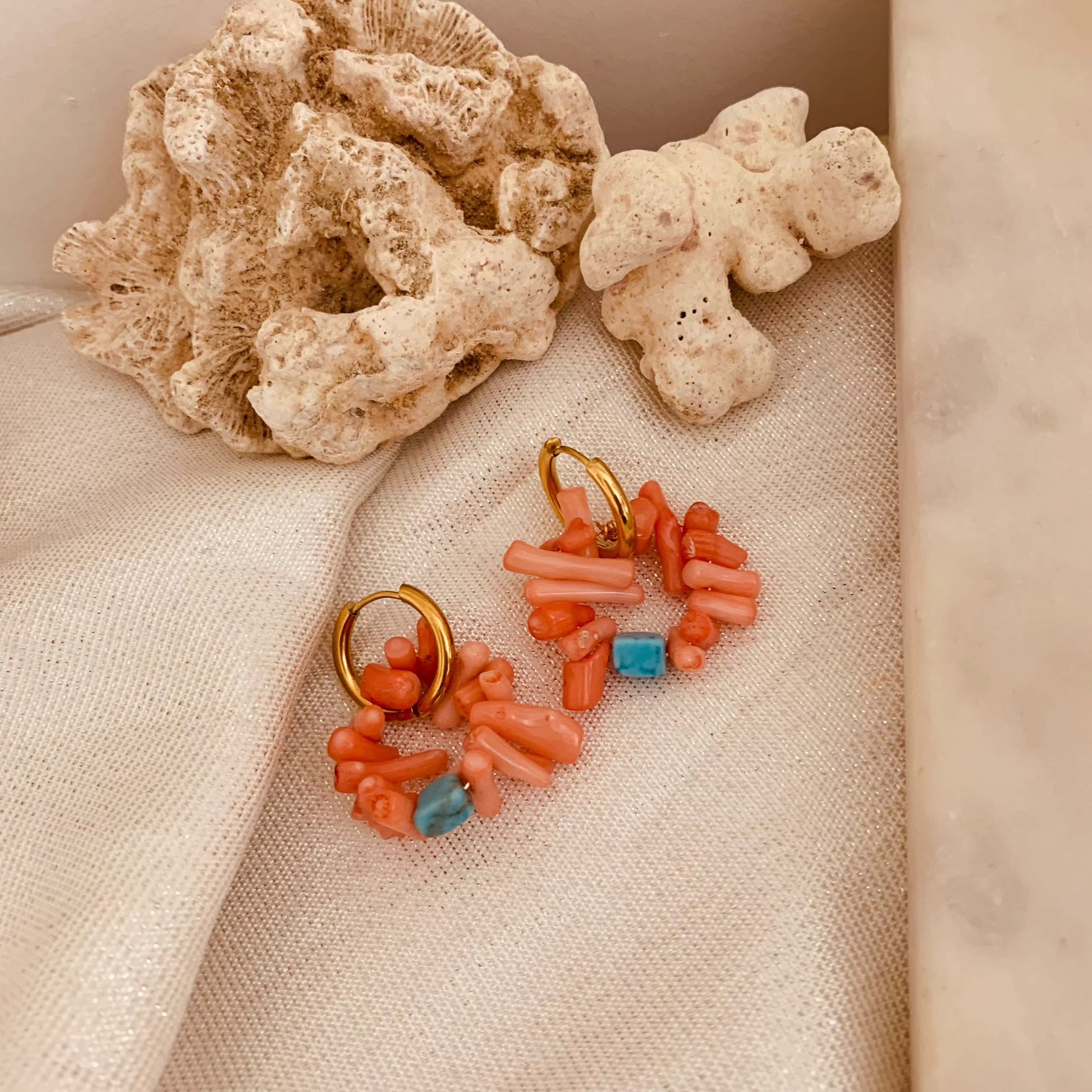 Delicados pendientes en coral. Ideal para vestimenta formal o un día soleado .