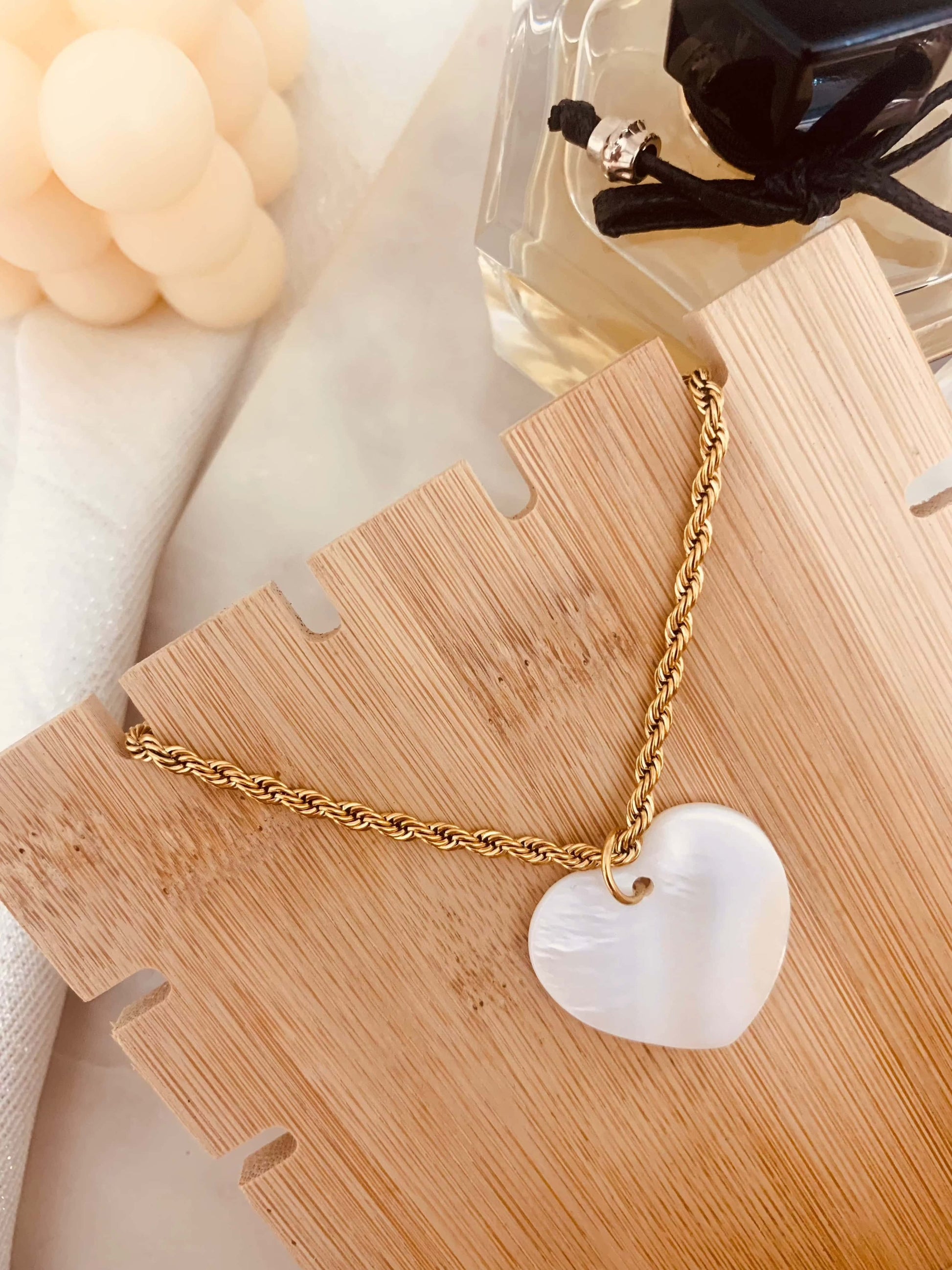Collar en tendencia en acero inoxidable. Incluye Coria on en Shell. Tamaño 21”