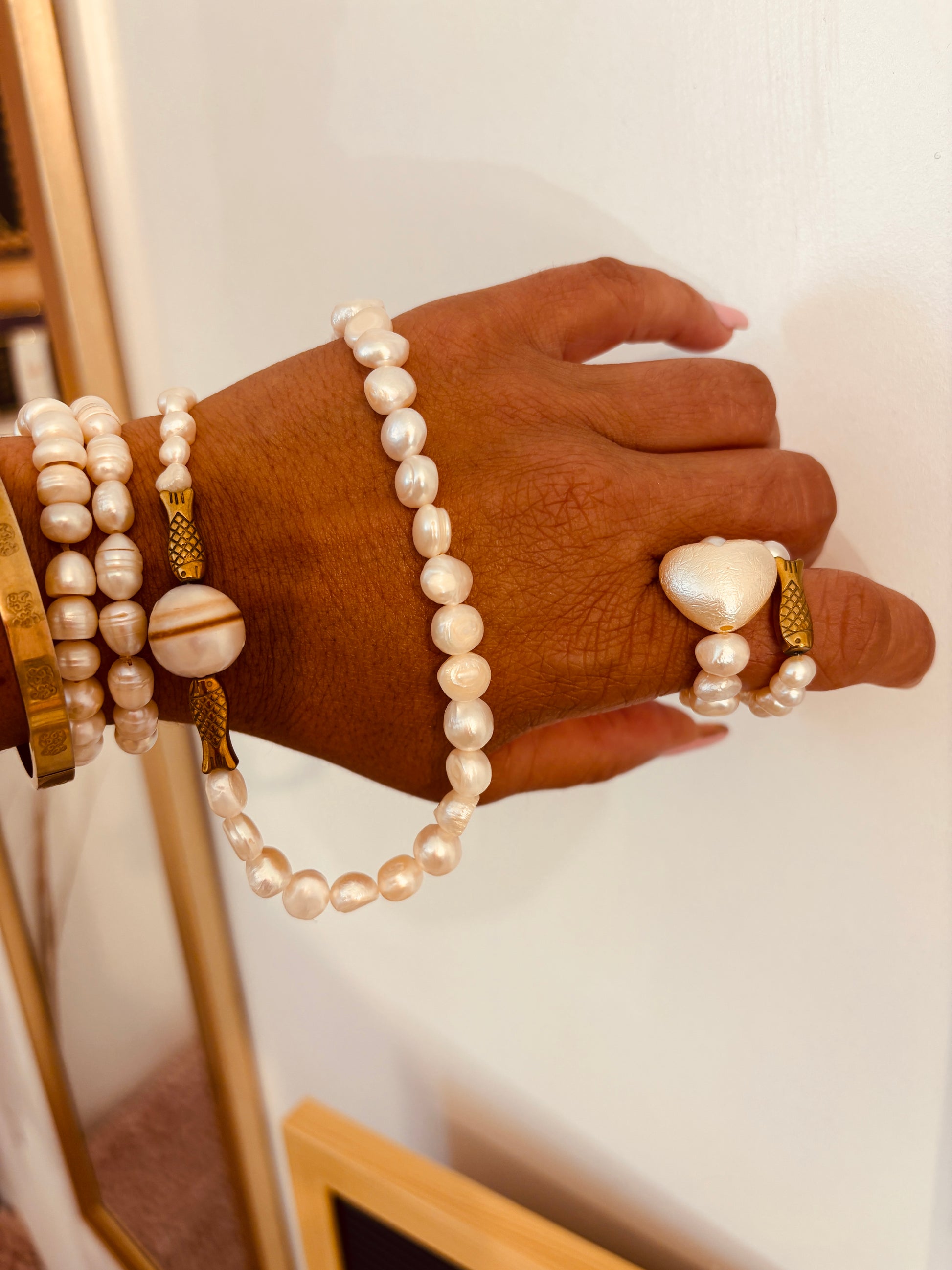 Este collar de perlas naturales presenta un hermoso diseño con un pez en hematomas perla barroca, dándole un toque único y exclusivo. Las perlas naturales proporcionan un brillo natural y elegante, lo que lo convierte en una elección perfecta para cualquier ocasión. Con un diseño que combina lo clásico con lo moderno, este collar es imprescindible en tu colección de joyas. Tamaño 15”