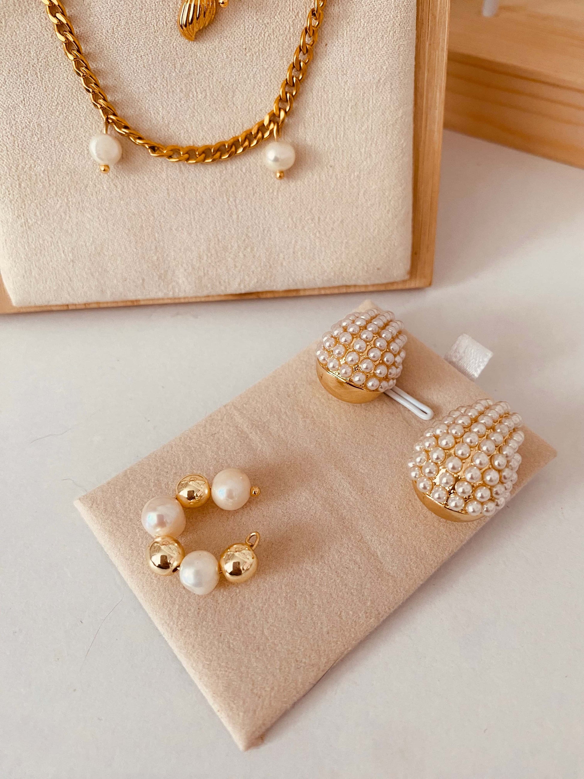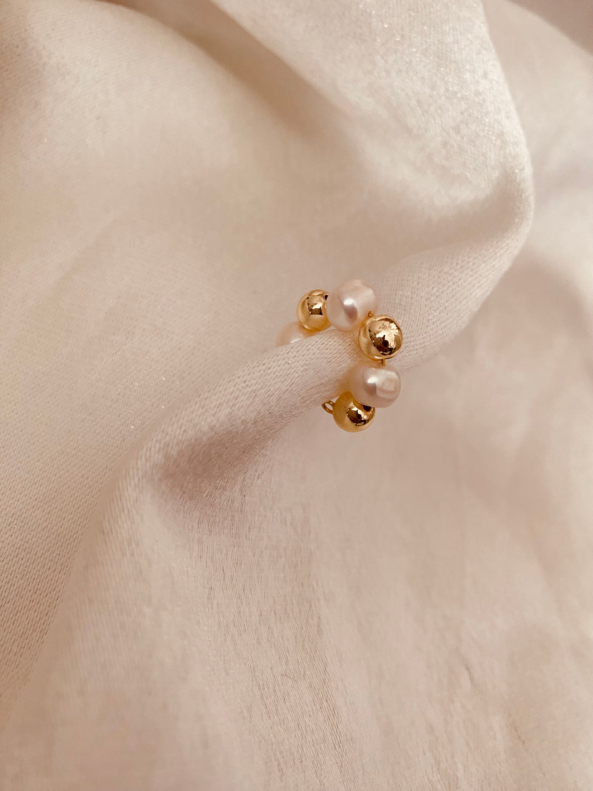 Este Ear Cuff de hematitas y Perlas de oro es perfecto para complementar tu look elegante y sofisticado. Hecho a mano, cuenta con un diseño único y detallado. La elegancia de las perlas se combina con el brillo de las hematitas, creando un accesorio que sin duda llamará la atención.
