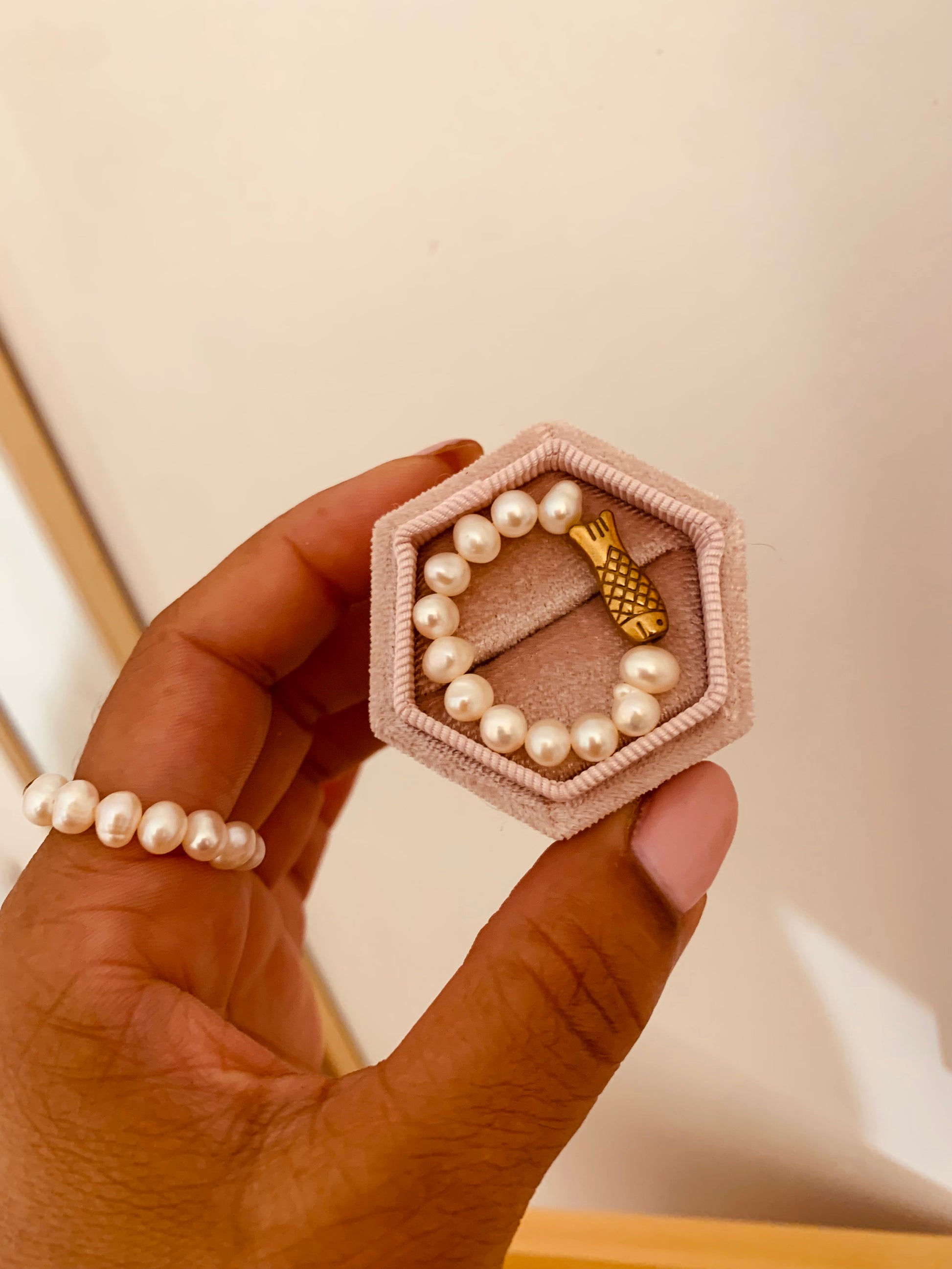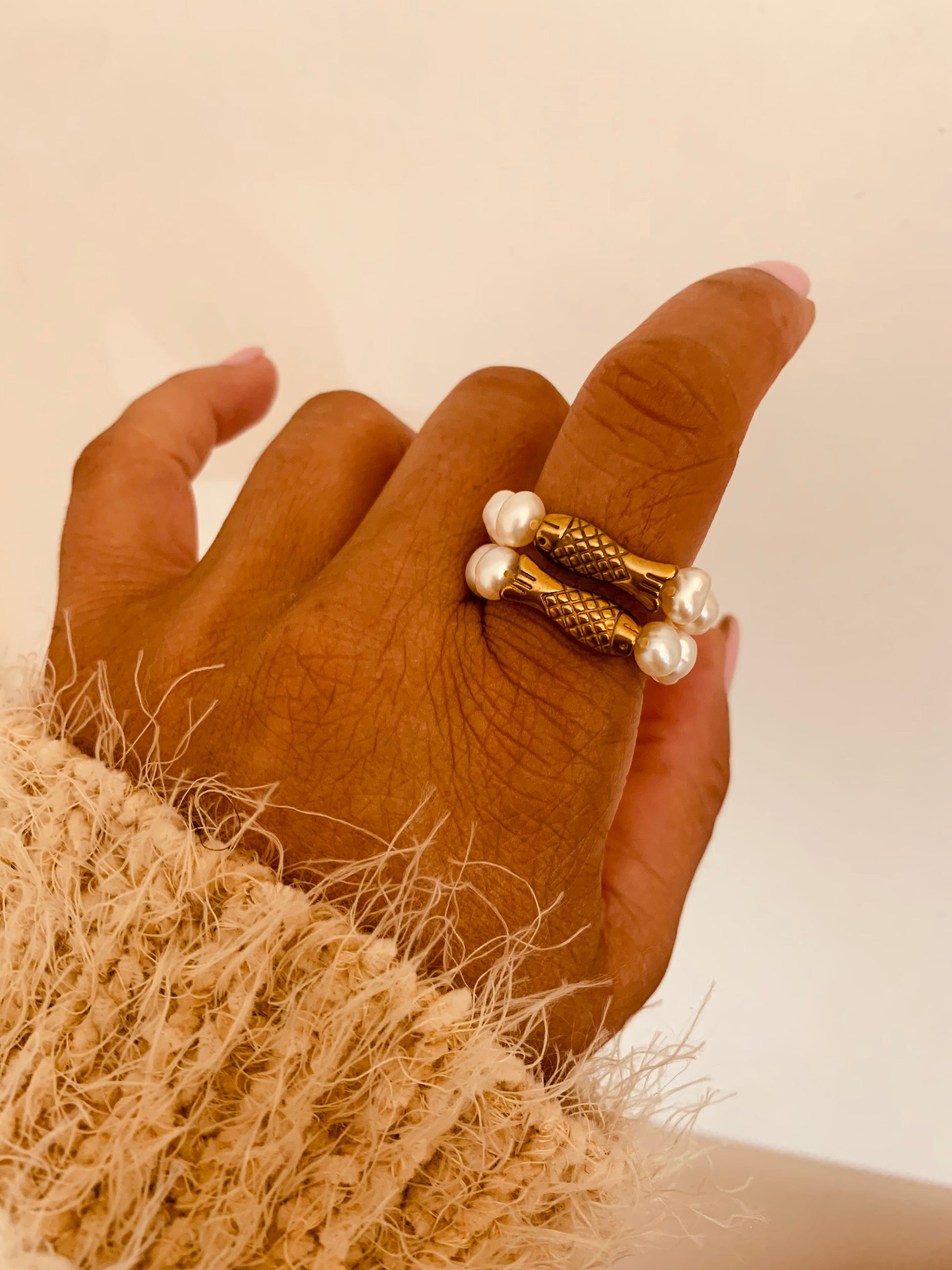 Descubre tu estilo bohemio con nuestro anillo de perlas naturales con detalle de pez hecho de hematita. Perfecto para el verano en la playa o como regalo para una mujer. Su diseño único y chic te hará destacar en cualquier ocasión. ¡Consigue el tuyo hoy mismo! Verano