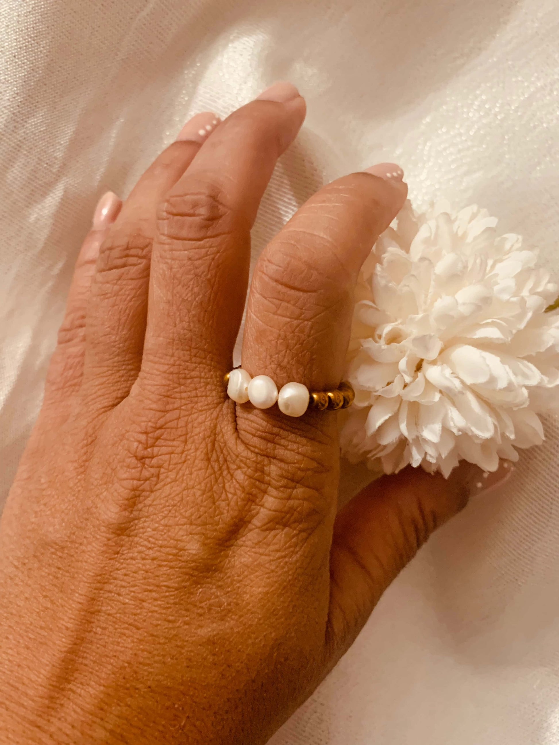 Hermoso anillo hecho con Perlas cultivadas y hematitas. Ideal para uso, si eres de las que no les gusta cambiar de joyería este anillo es para ti. También es un buen regalo para hija o hermana. Laborado a mano. Puedes ordenar size, hecho a la medida.