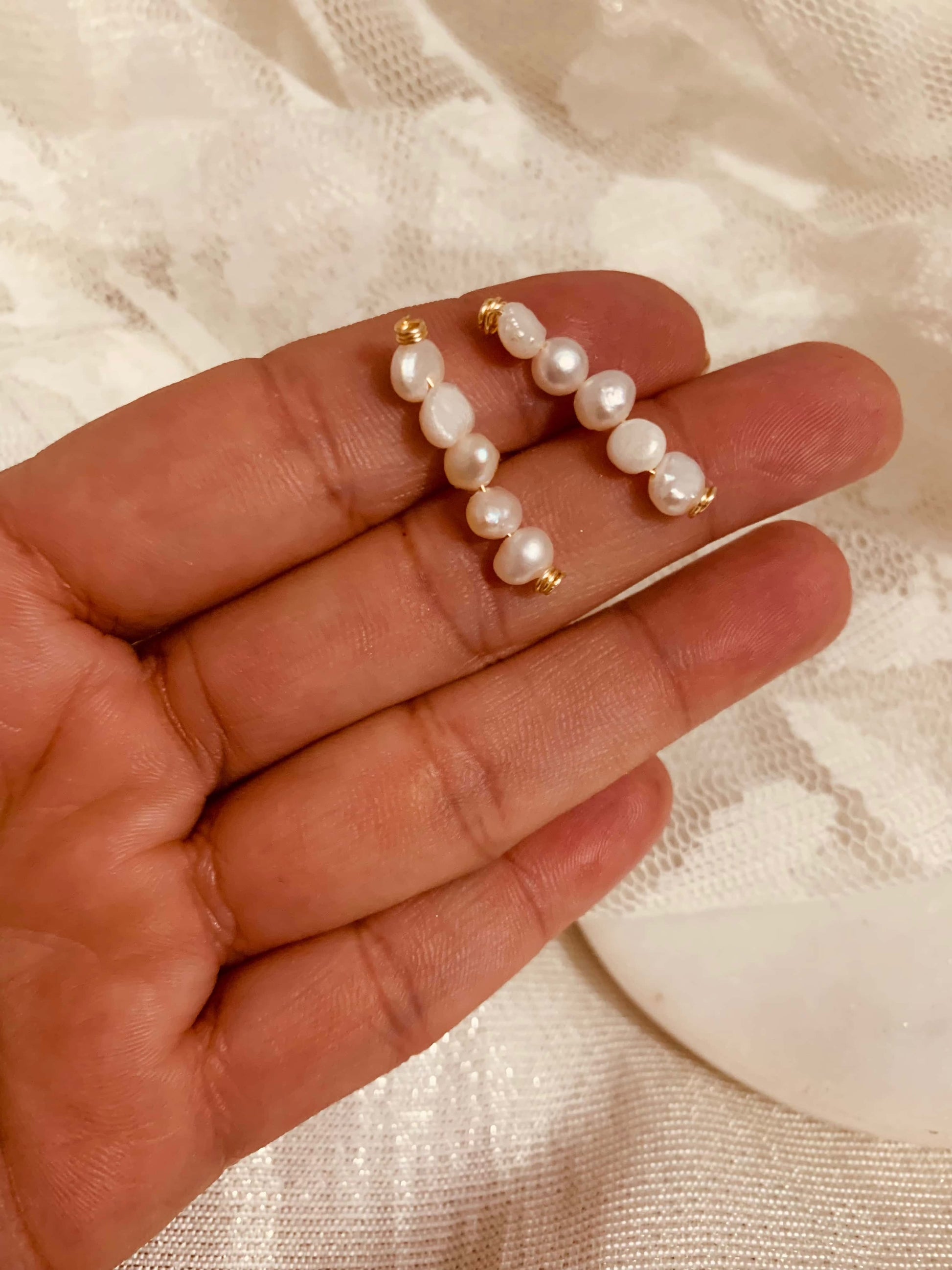 Delicados pendientes en tendencia. Elaborado a mano con perlas cultivadas. Deslumbra con estos pendientes.