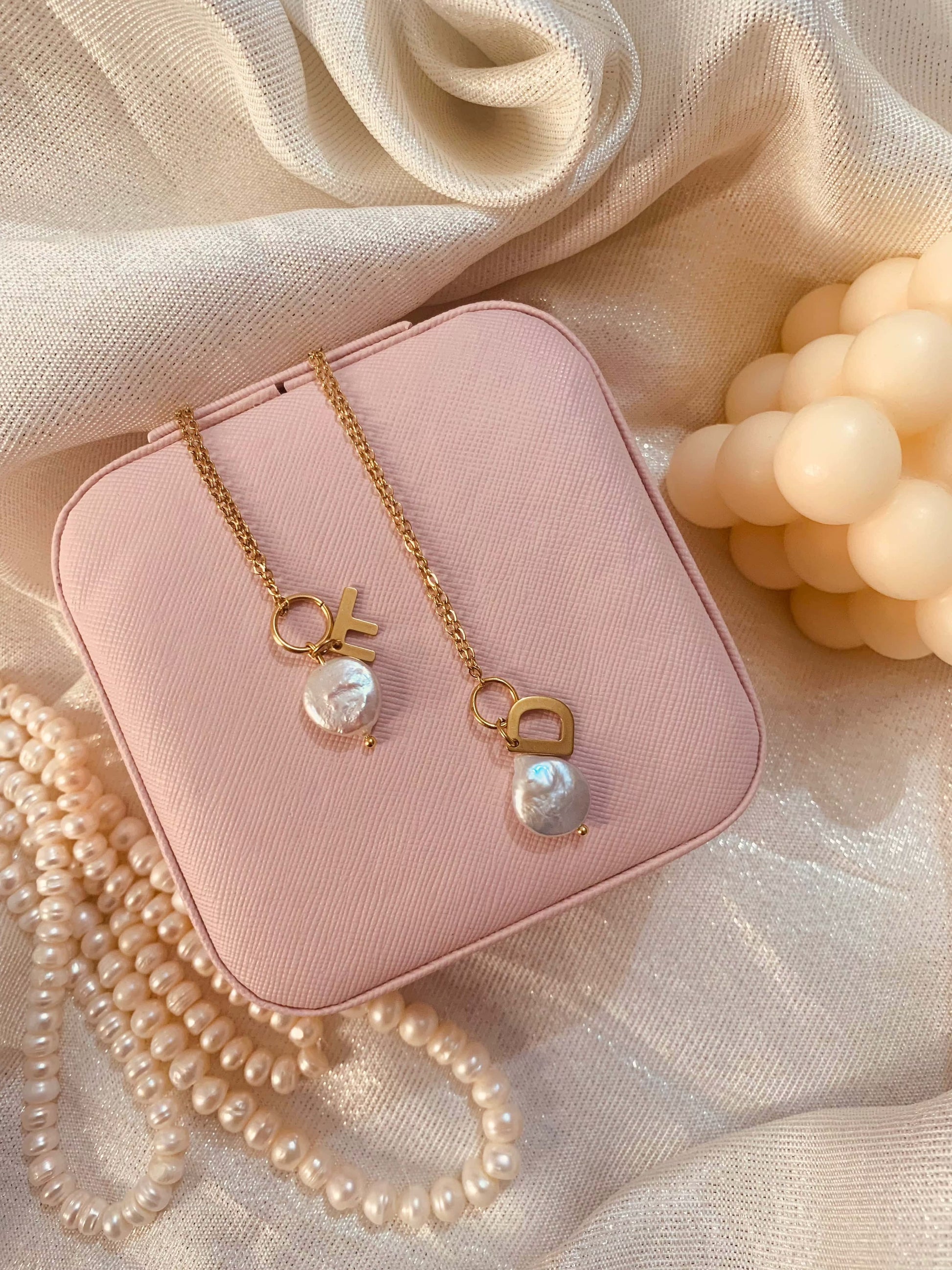 Delicado collar de inicial elaborado a mano con perlas cultivada y acero inoxidable. Este es el detalle Perfecto para un regalo. Es inspirado en nuestros dos best seller. Para disponibilidad de letra favor ponerse en contacto.