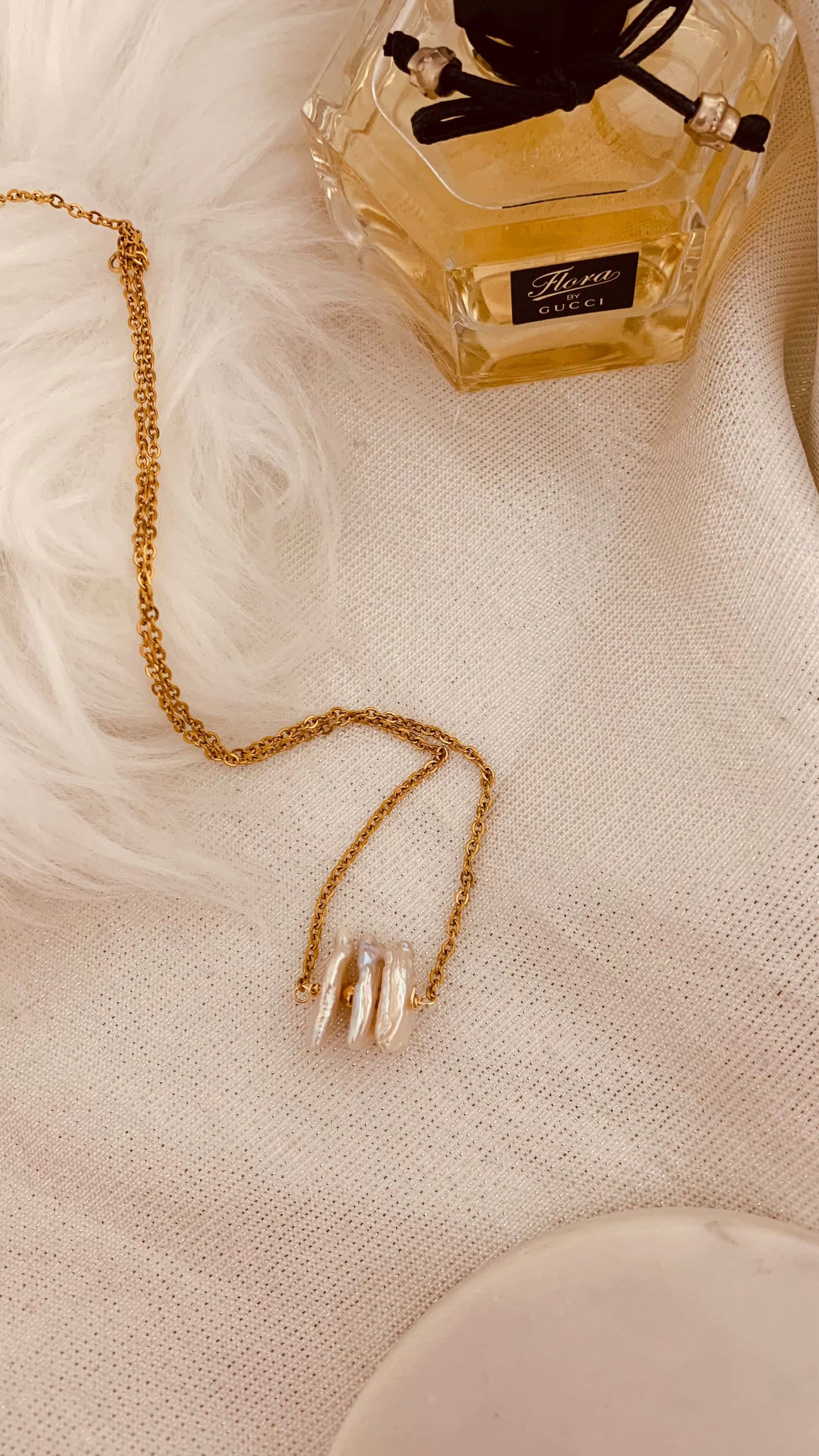 Delicado collar de perla barroca ideal para vestimenta casual o formal. Crea layering espectacular con esta delicada cadena.