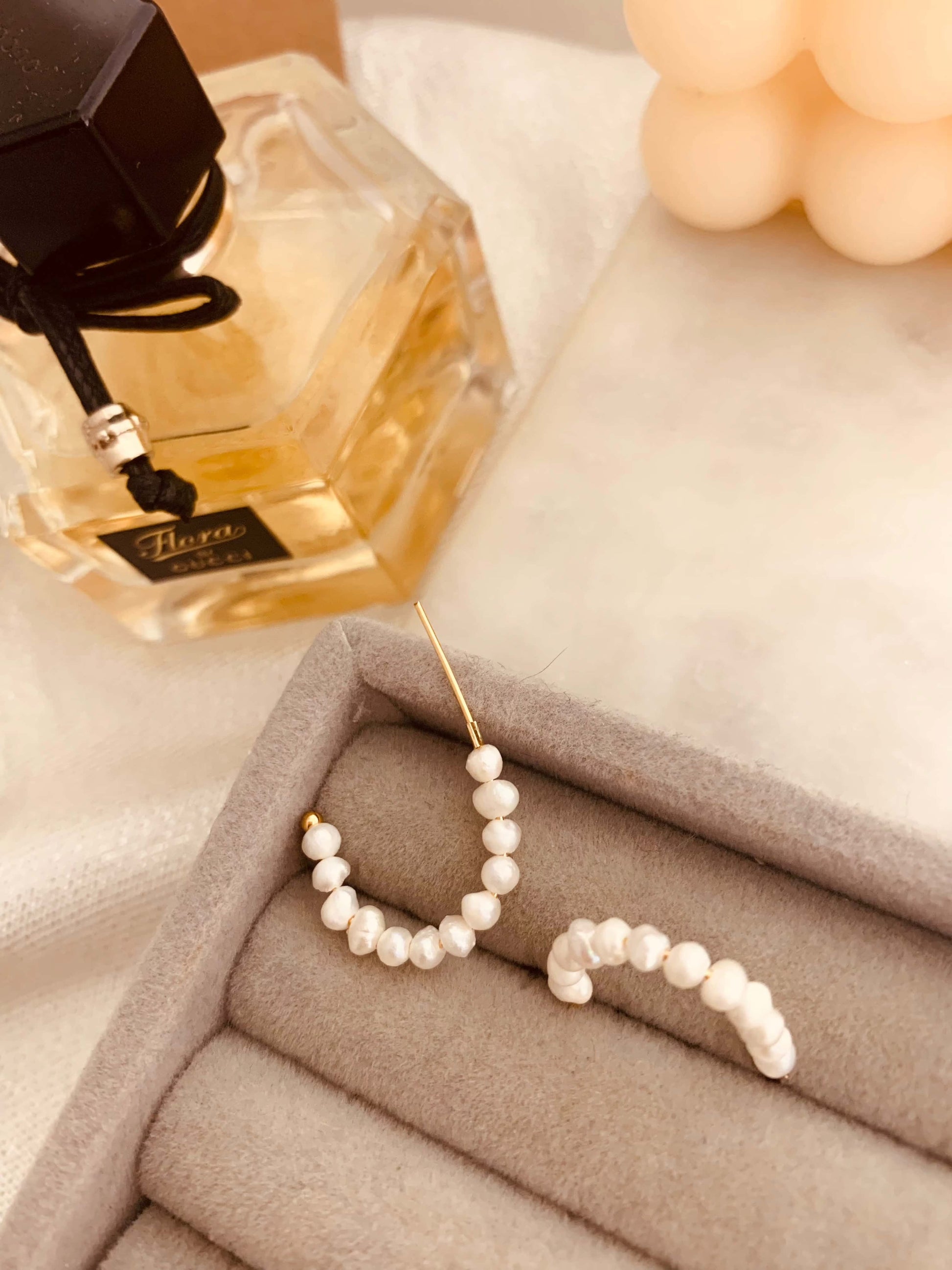 Delicados hoops elaborados a mano con perlas cultivadas. Tamaño pequeños .