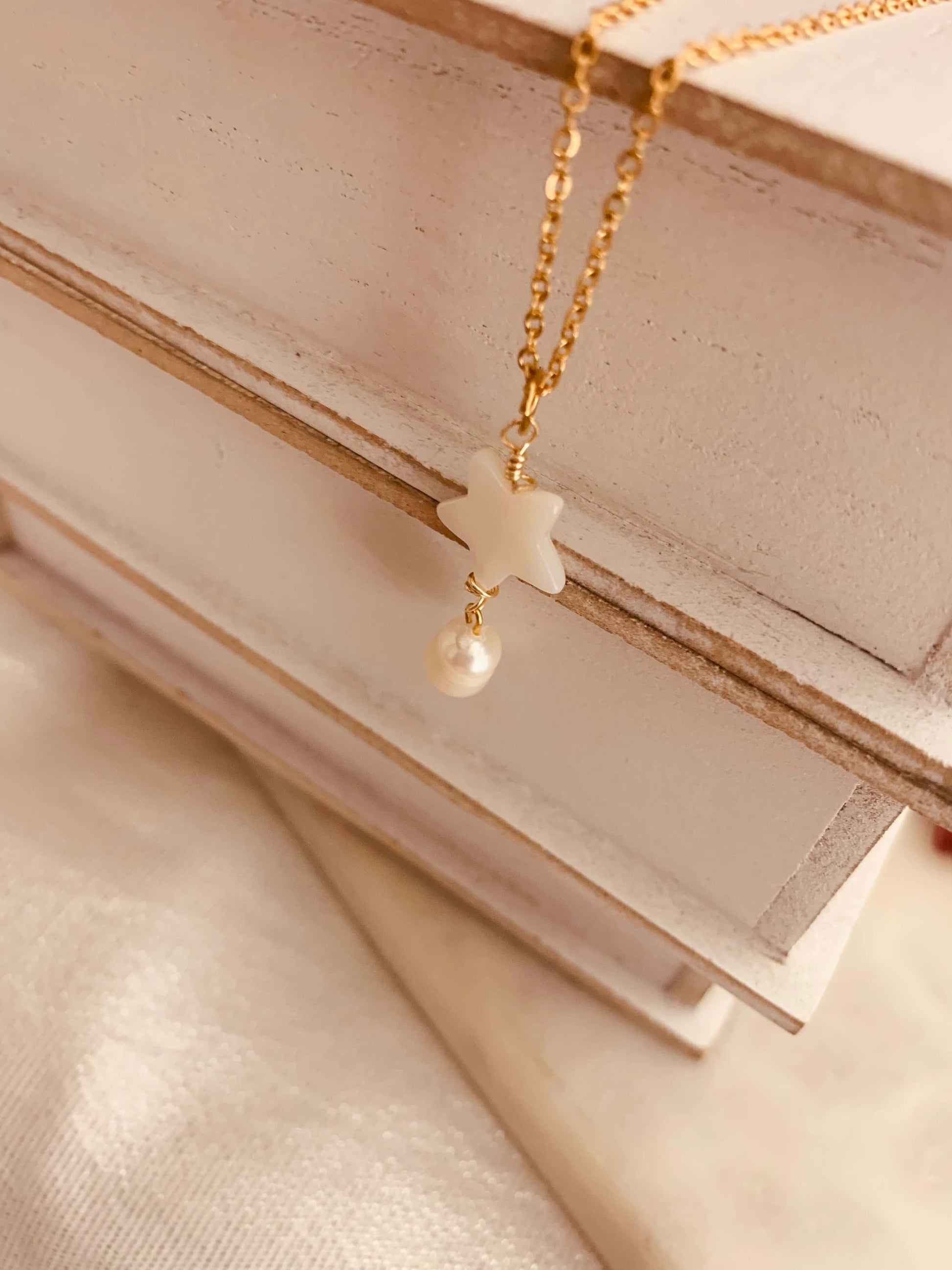 Delicado collar con Estrella en “Shell” ideal para tercera capa de Layering.