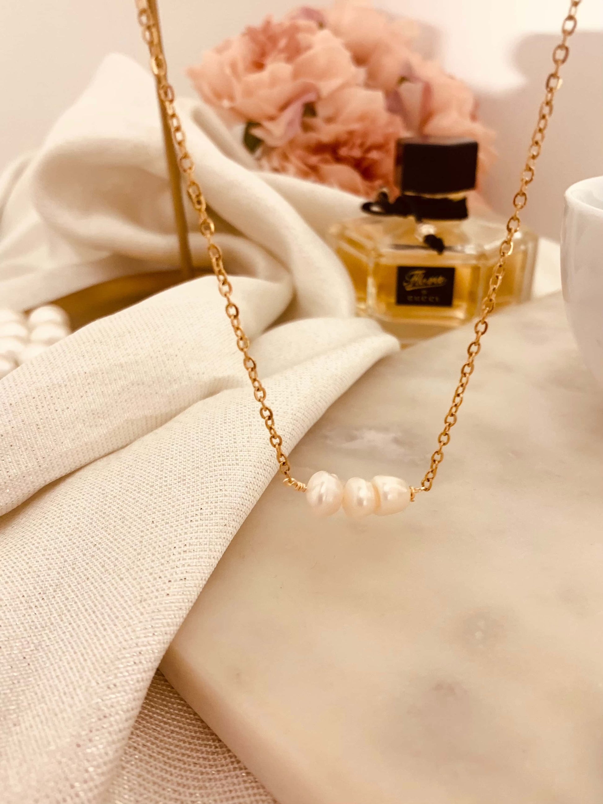 Hermoso choker elaborado a mano con perlas cultivadas, ideal para la primera capa de Layering. Ideal para uso diario. Tamano 15. 1/12