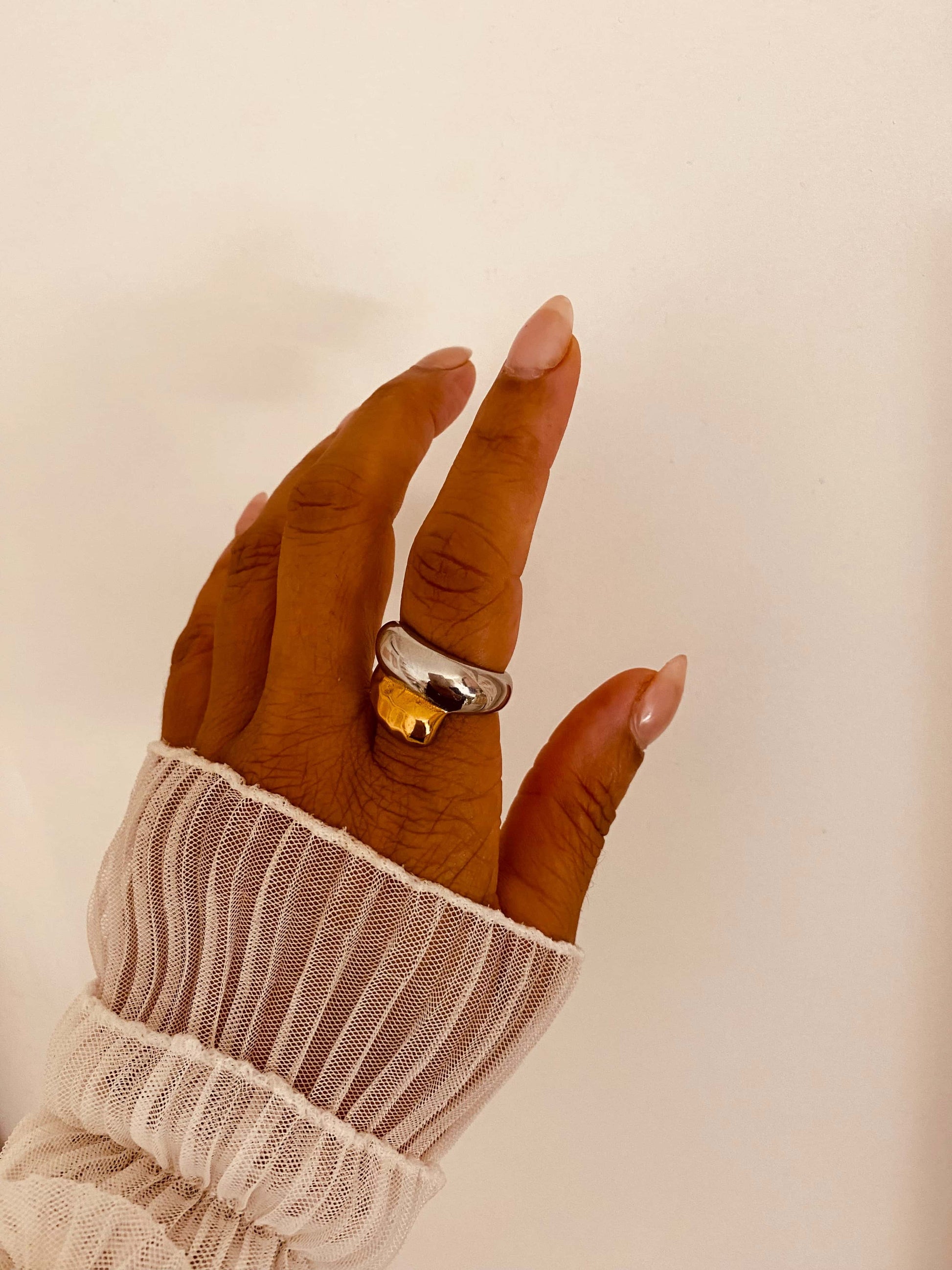 Este anillo Mix&Match presenta un diseño único con sus dos tonos que se complementan a la perfección. Fabricado con materiales de alta calidad, es una opción elegante y versátil para cualquier ocasión. Agrega un toque de estilo a tu look diario o combínalo con otros anillos para crear un conjunto verdaderamente personalizado.
