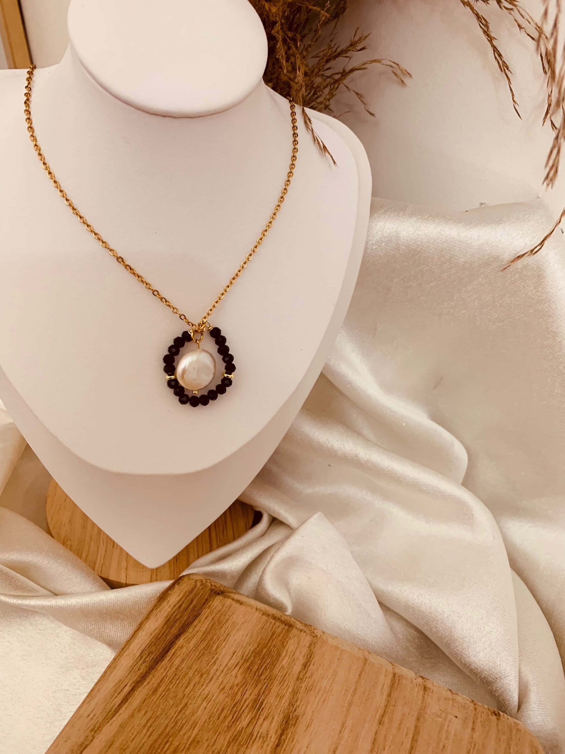 Delicado dolar en acero inoxidable con perla cultivada. Tamaño 45
