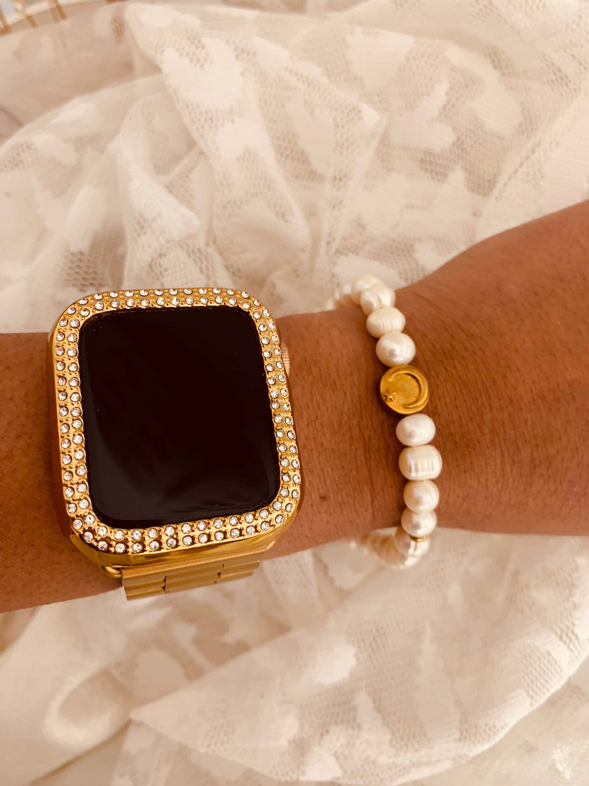 Delicado brazalete elaborado a mano con perlas cultivadas y acero inoxidable. Ideal para regalar por su delicada elaboración sacarás una sonrisa a quien lo reciba.