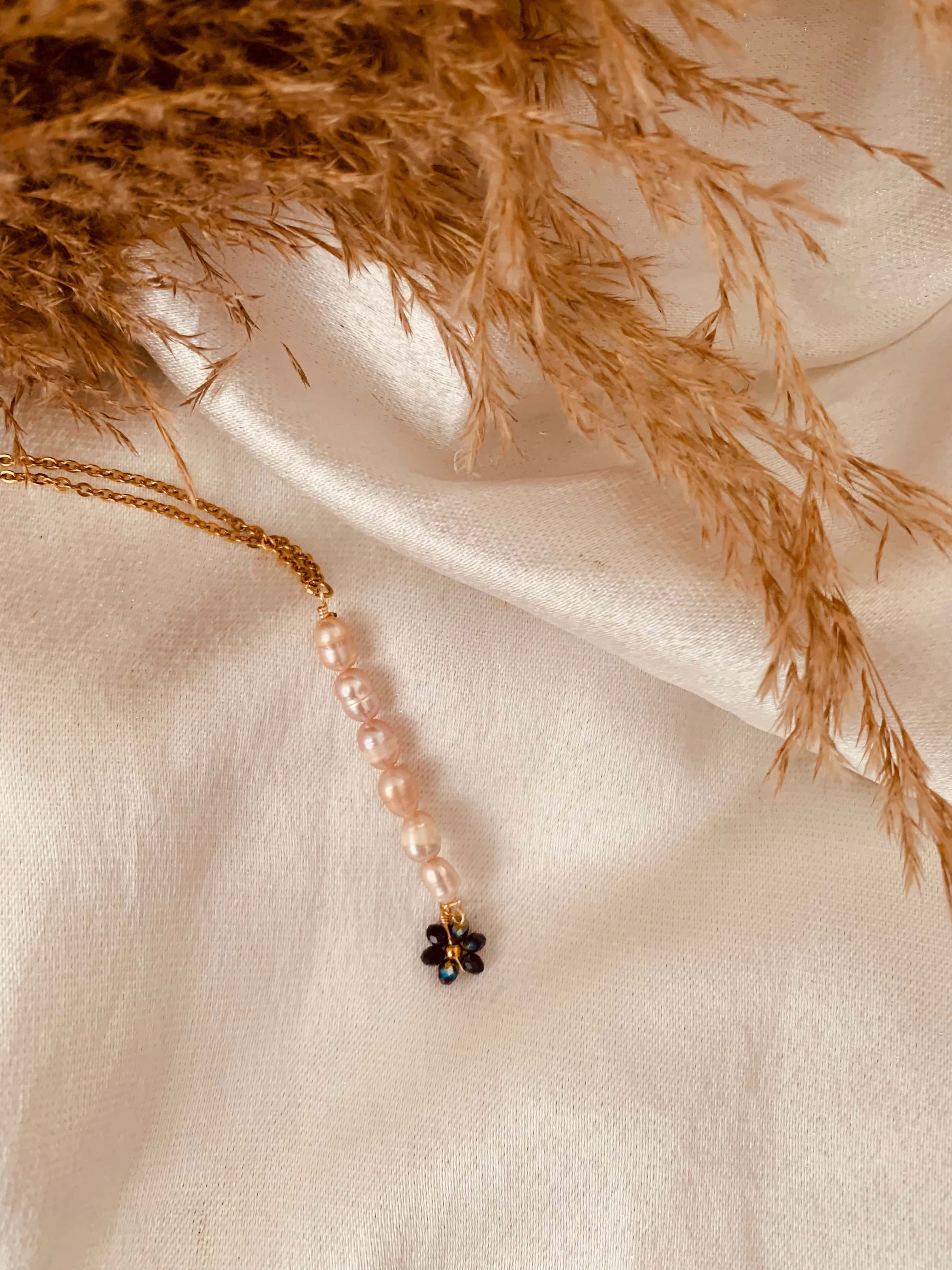 La Novia Peach es un collar único y elegante elaborado a mano con perlas peach y una hermosa flor en tonos negros tornasol. Cada collar es creado cuidadosamente para reflejar sofisticación y estilo en cada ocasión. Una adición perfecta para tu colección de joyería.