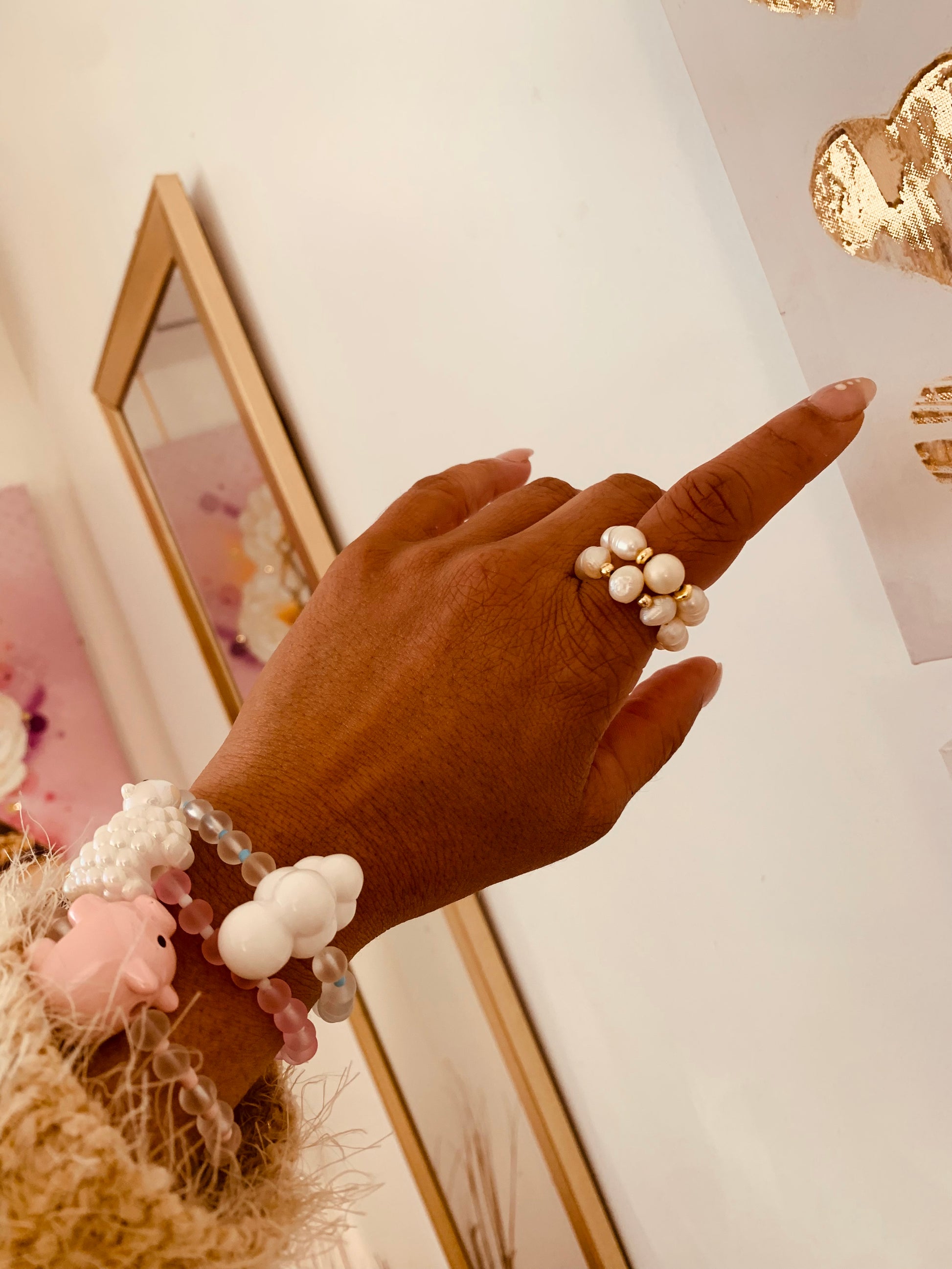 Esta pulsera elástica de oveja es la última tendencia en accesorios. Fabricada con materiales de alta calidad, su diseño único y moderno la convierten en el complemento perfecto para cualquier atuendo. Realza tu estilo con esta pulsera de nube, ¡un must-have para cualquier amante de la moda!