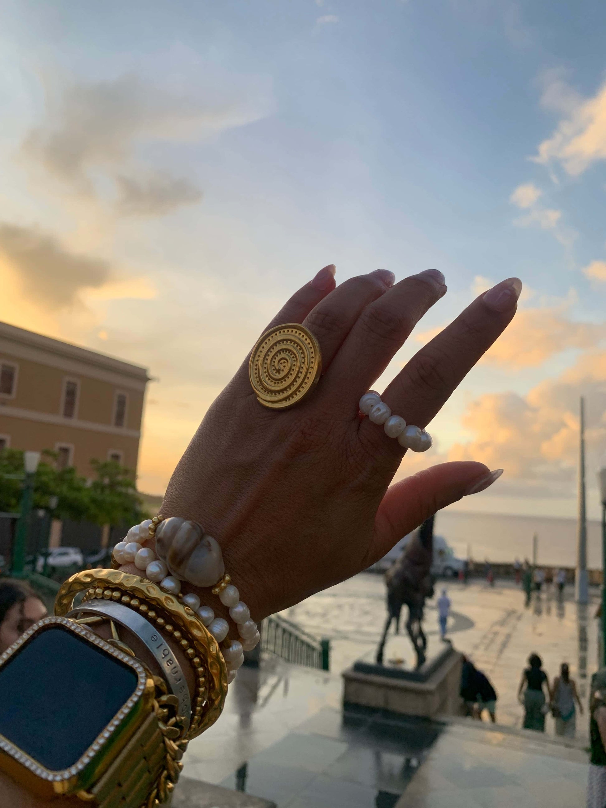 Con un toque suave y elegante, el anillo de perlas naturales es el accesorio perfecto para cualquier ocasión. Con su diseño elástico, se ajusta cómodamente a todos los tamaños de dedos. Luce elegante y sofisticada con un toque de brillo natural. ¡Haz una declaración con la belleza natural de las perlas!