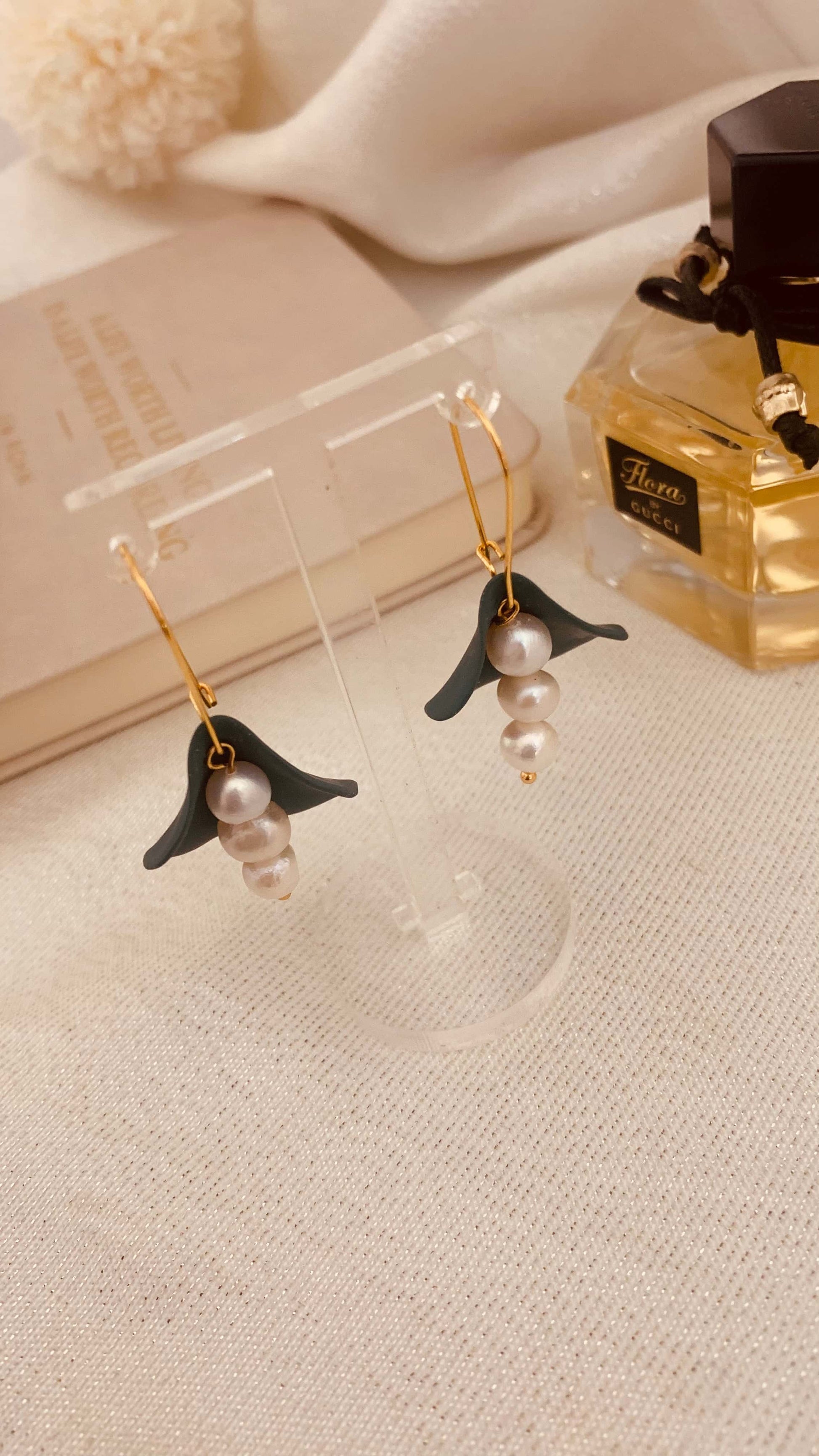 Delicados pendientes de pétalos con perlas naturales. Si deseas añadir colar o pulsera puedes ordenar por mensaje. Tamaño mediano.