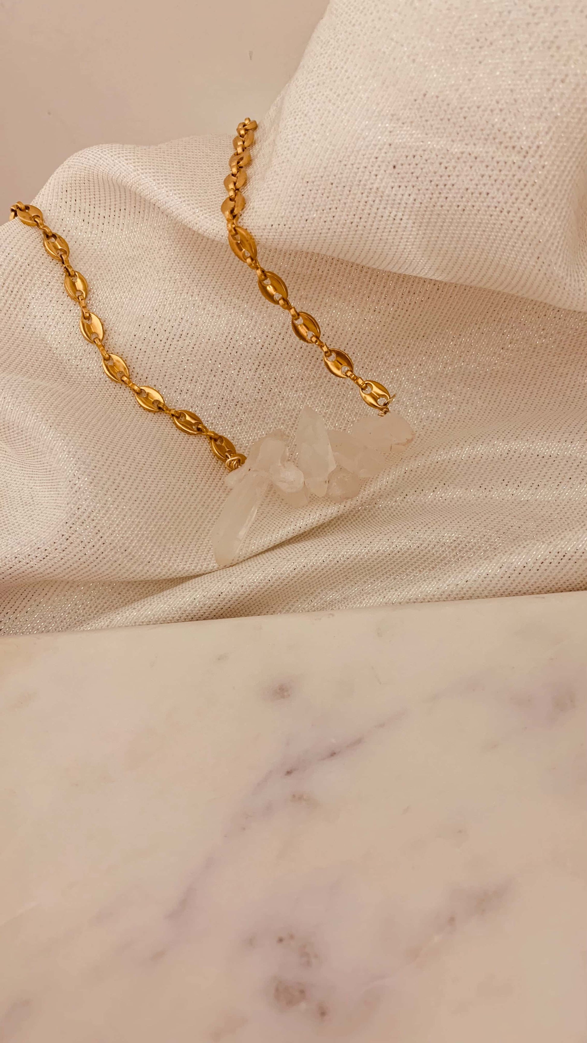 Delicado collar exclusivo de nuestra tienda. Elaborado con acero inoxidable y cuarzo transparente. Si amas la exclusividad este collar es para ti.