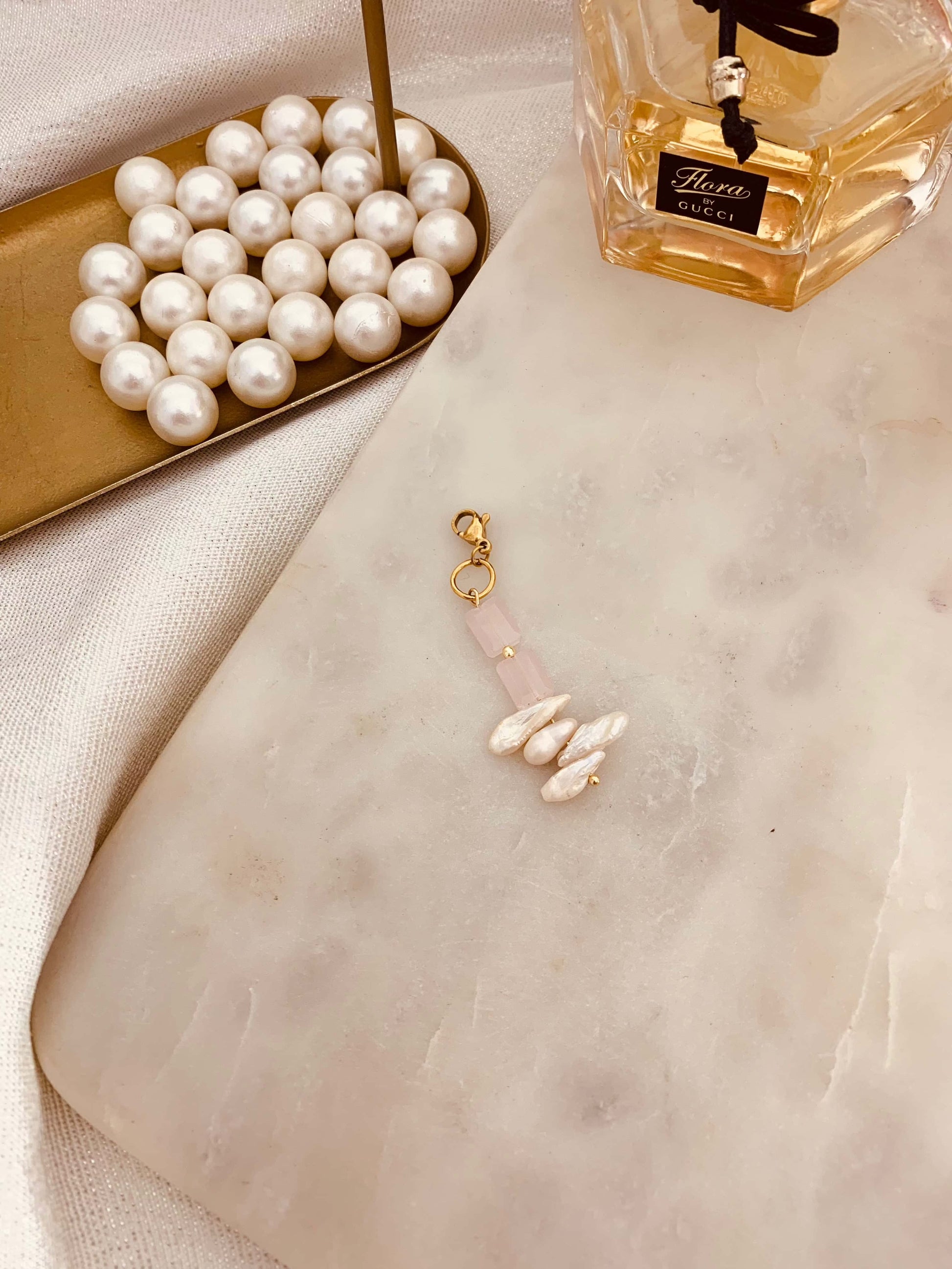 Delicado charm elaborado a mano con perlas barrocas. Ideal para cadenas o pulseras .