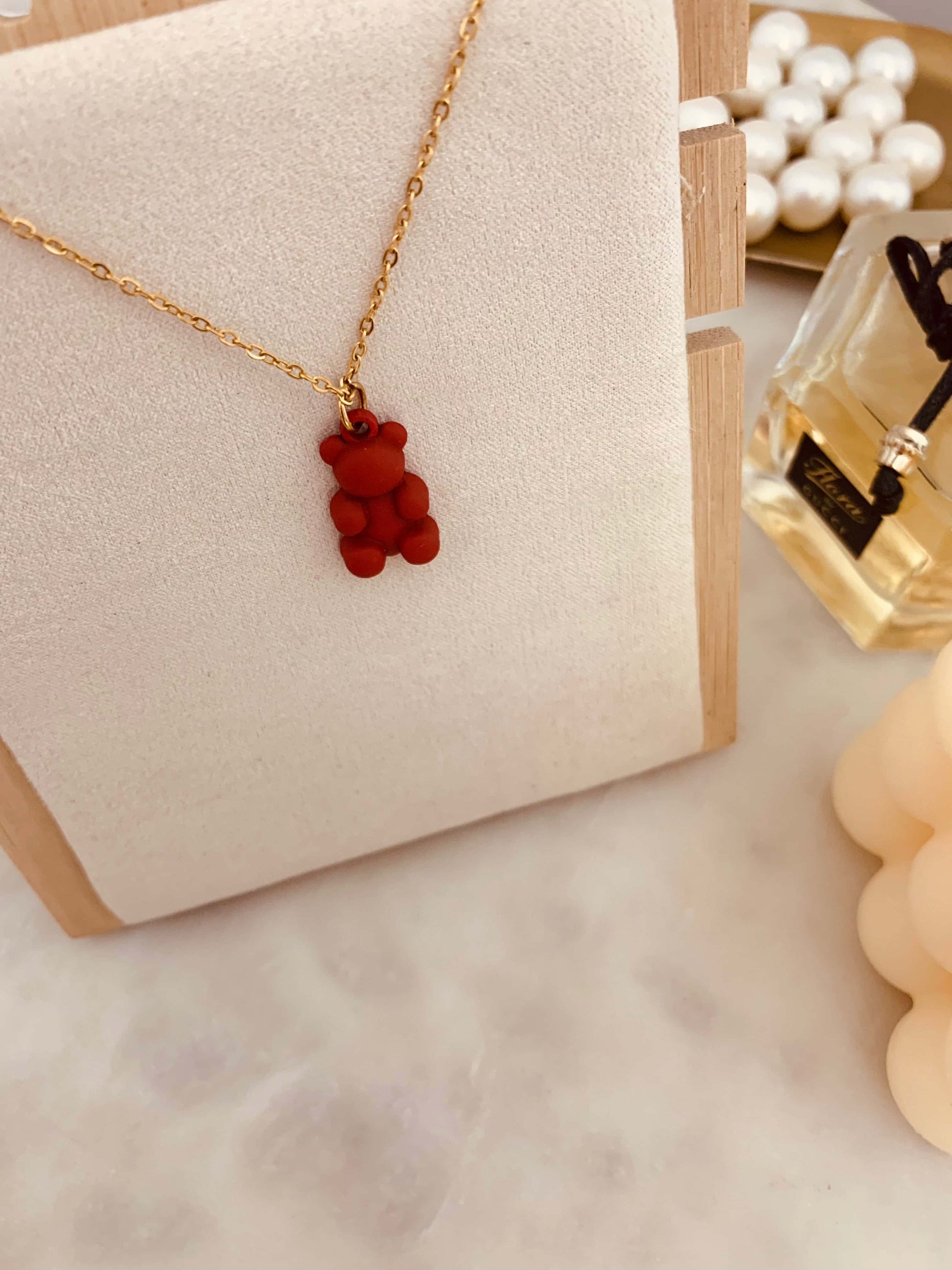 Cadena en tendencia de osito rosado. Ideal para la Tercera capa de Layering. Esta también es una buena opción para regalar a una niña.