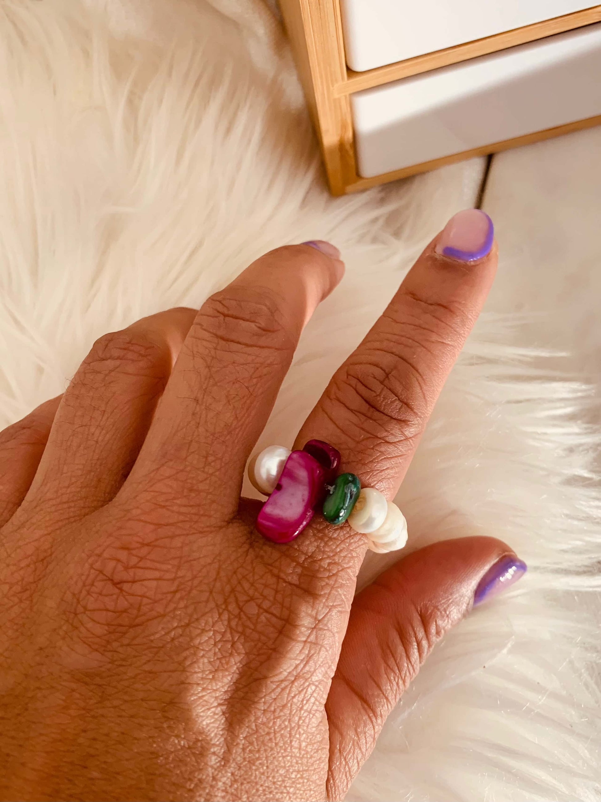 Delicado anillo de perlas inspirado elástico inspirado en Ruby Falls