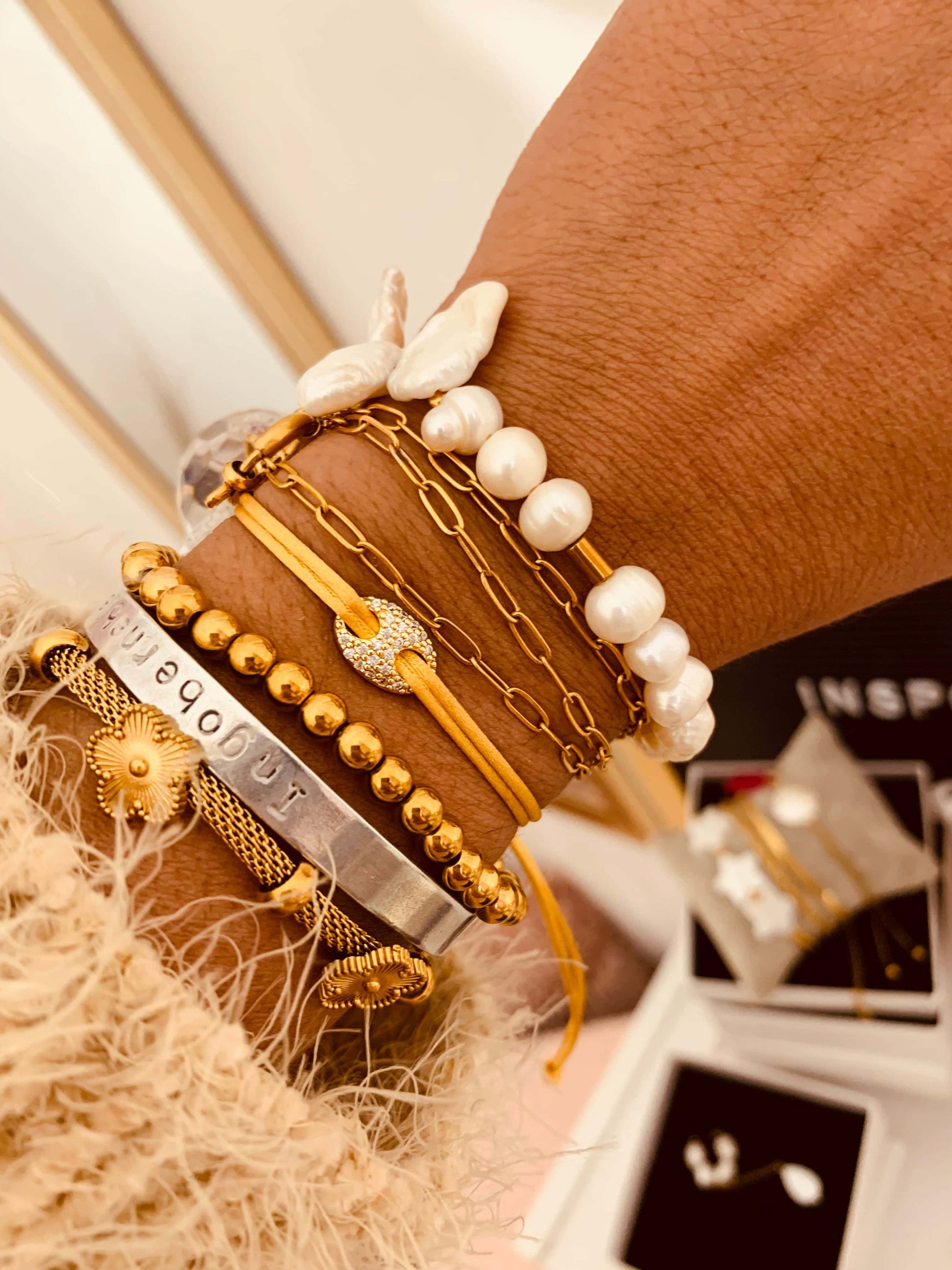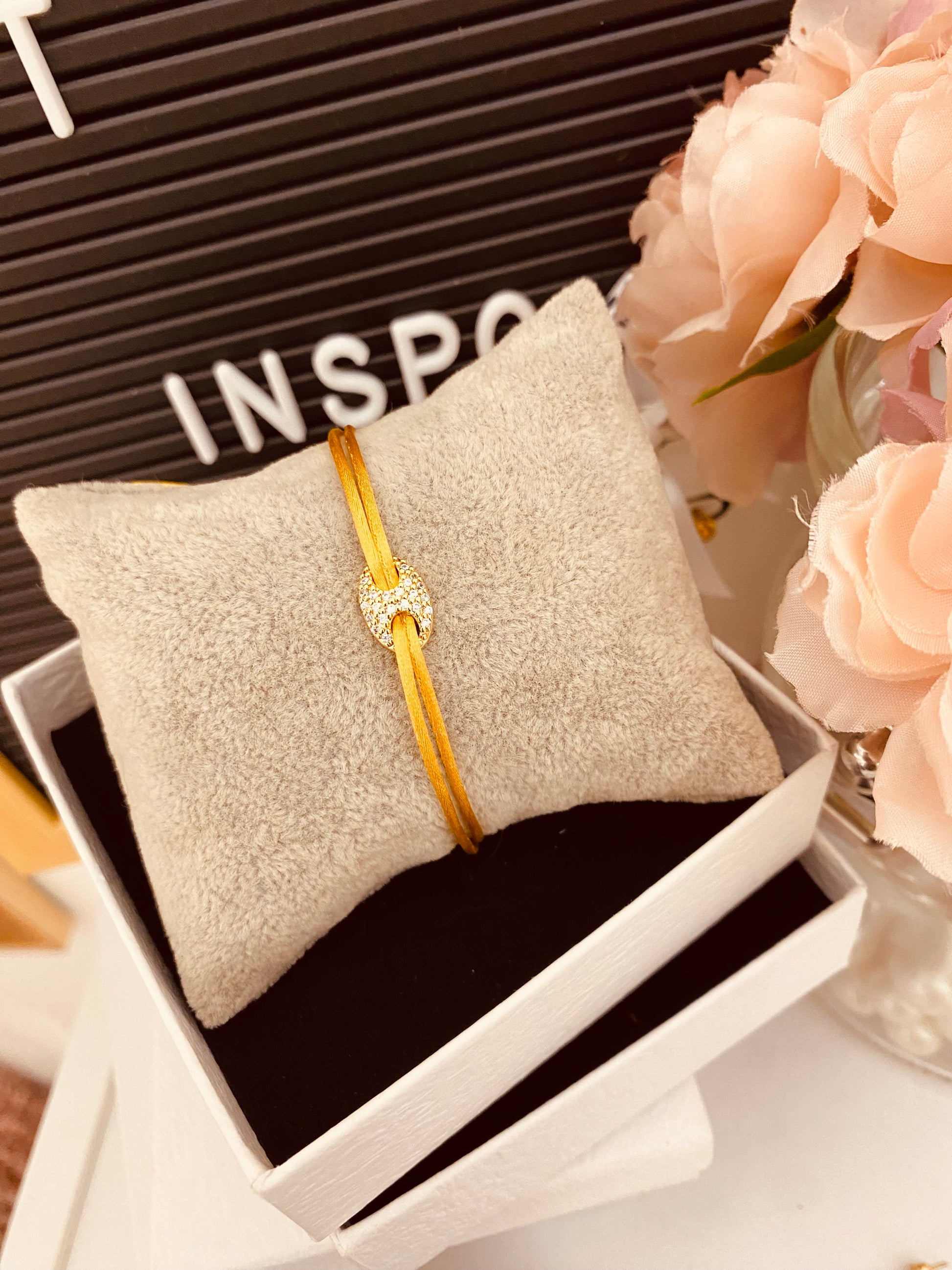 Esta pulsera ajustable con charm Pezzie es el accesorio perfecto para añadir un toque de brillo a tu look. Hecha a mano con cordones de satin dorado, esta pieza única es llamativa y elegante. Ajustable para adaptarse cómodamente a tu muñeca, esta pulsera es ideal para cualquier ocasión. ¡Hazte notar con la Satin Pezzie Gold!