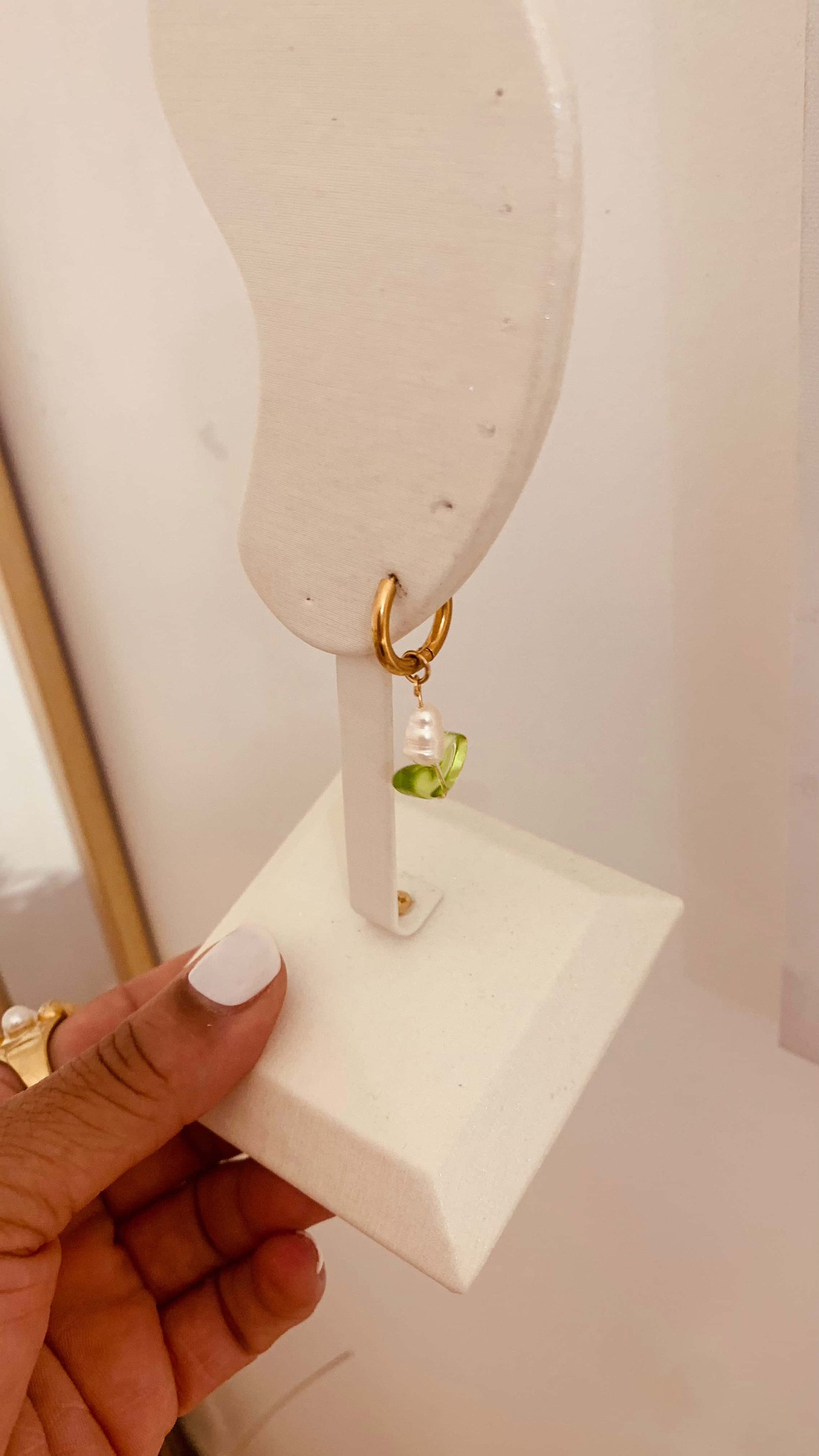 Delicados pendientes de acero inoxidable y perlas cultivadas. Tamaño mediano