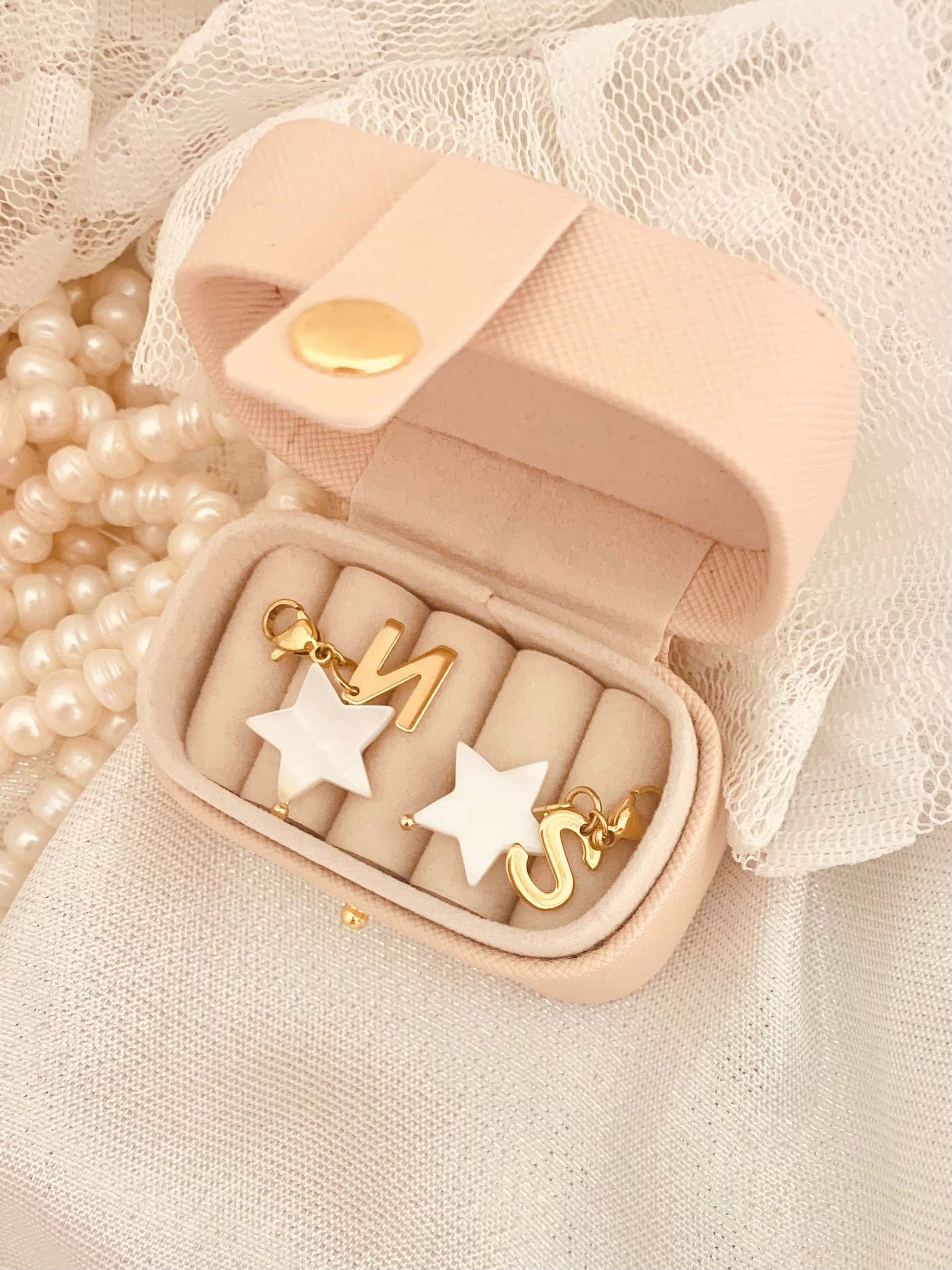 Delicado charm elaborado a mano con Estrella en madre perla. Ideal para personalizar Cadena o pulsera. Esta es una buen opción para regalar. Para disponibilidad de inicial favor ponerse en contacto. DM