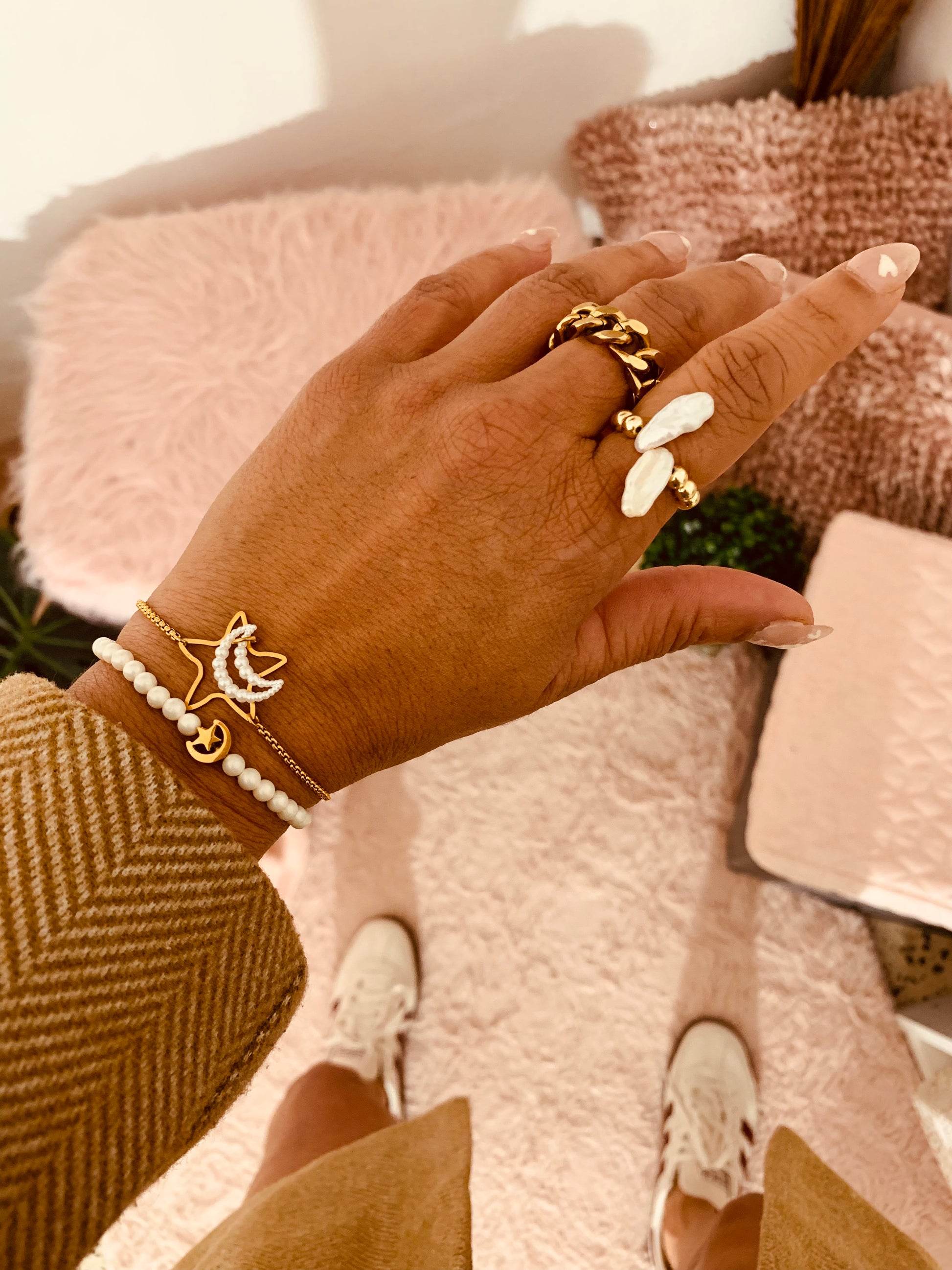 Esta pulsera exclusiva Star Moon cuenta con un diseño ajustable en acero inoxidable de estrella y luna, perfecto para cualquier ocasión. Hecha con materiales de alta calidad, esta pulsera garantiza durabilidad y comodidad mientras añade un toque de estilo a tu atuendo. ¡Una pieza imprescindible para tu colección de joyería!