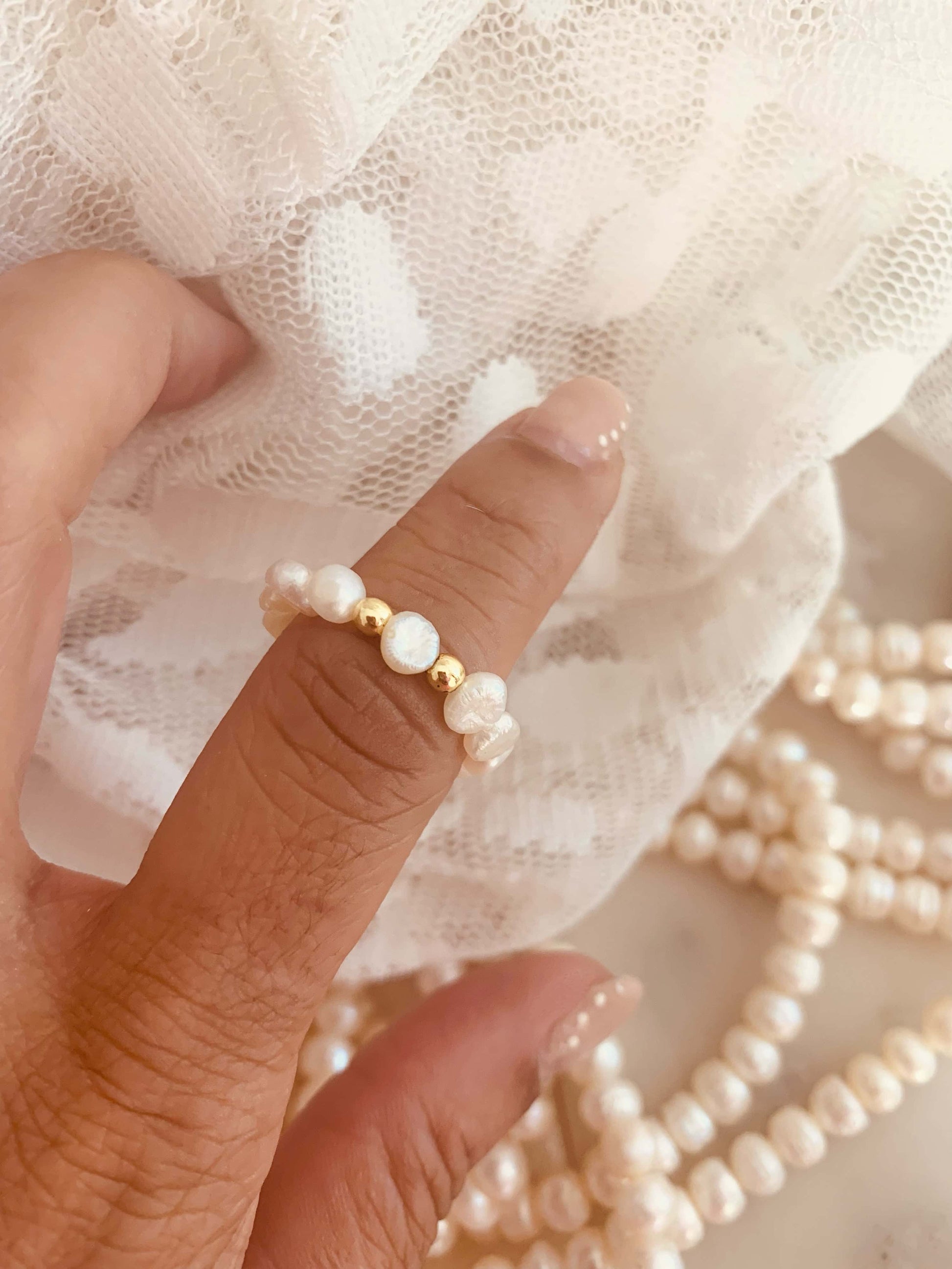 Anillo elástico elaborado a mano con perlas cultivadas. Size 7 elástico . Para más cantidades puede ponerse en contacto DM