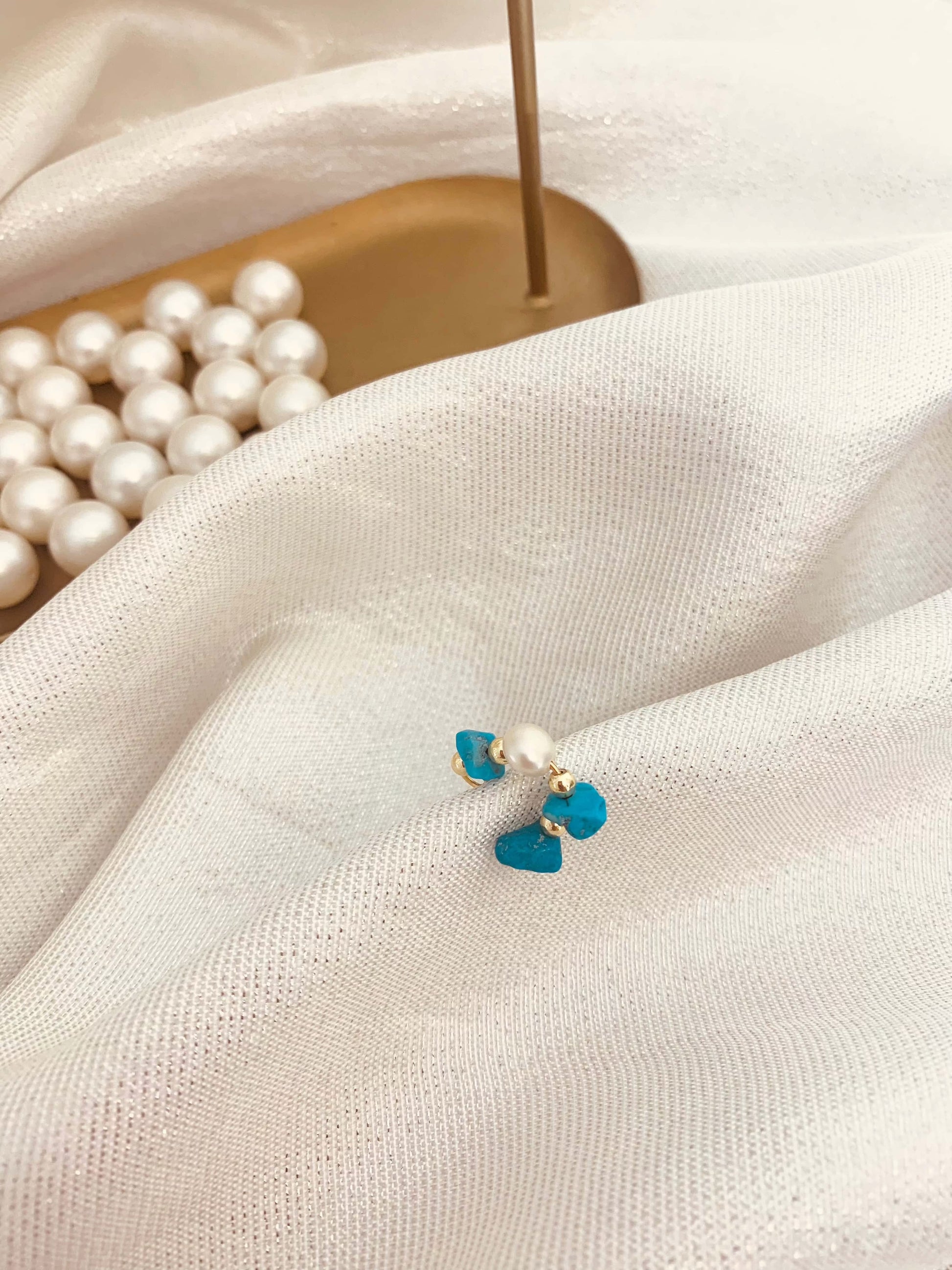 Delicado cuff elaborado a mano con perlas cultivada y toque turquesa. Ajustable